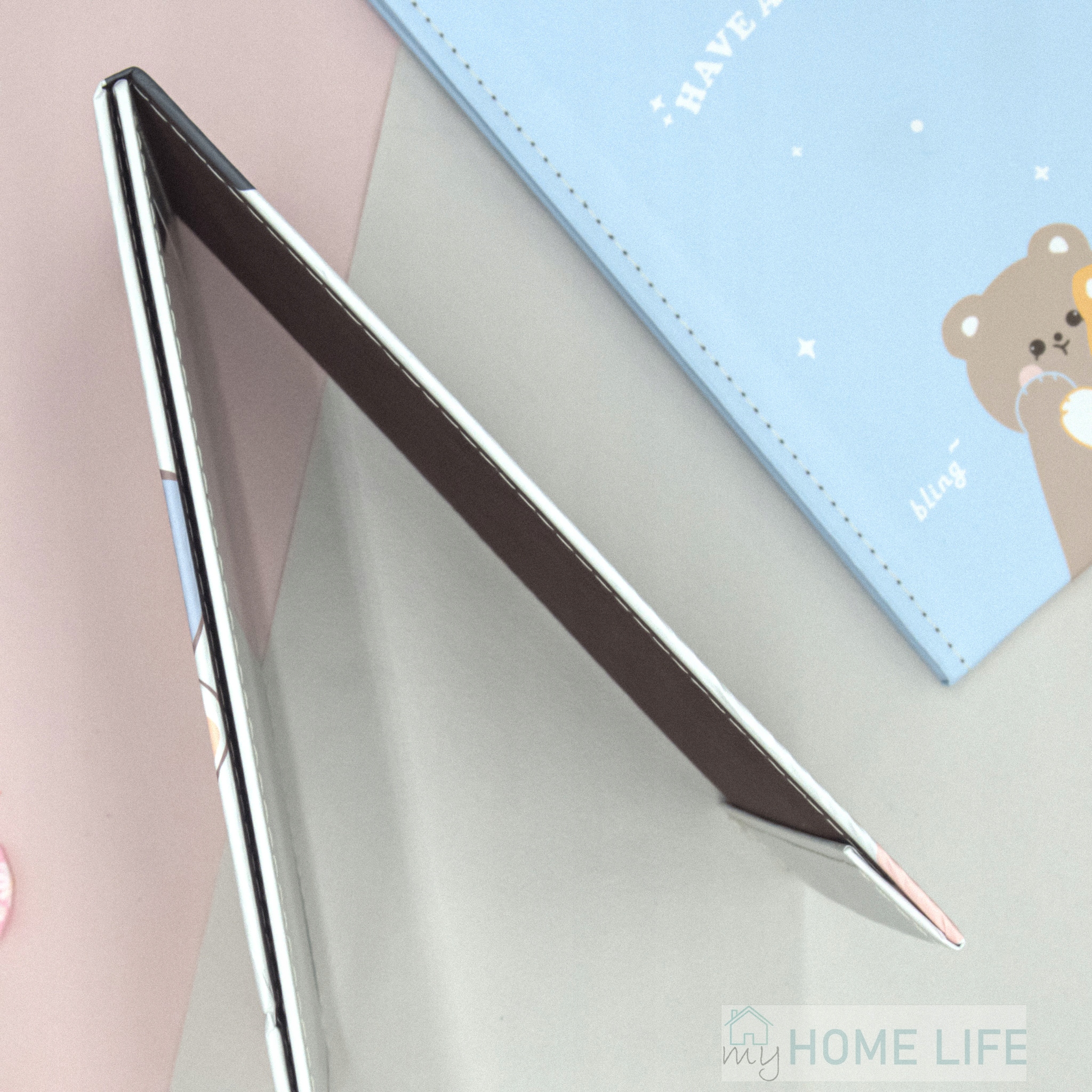 Незаменимо в путешествии. Зеркало складное, поэтому поместится в любой багаж. Он очень тонкий и в разложенном виде идеально подходит для нанесения идеального макияжа или любимой прически.