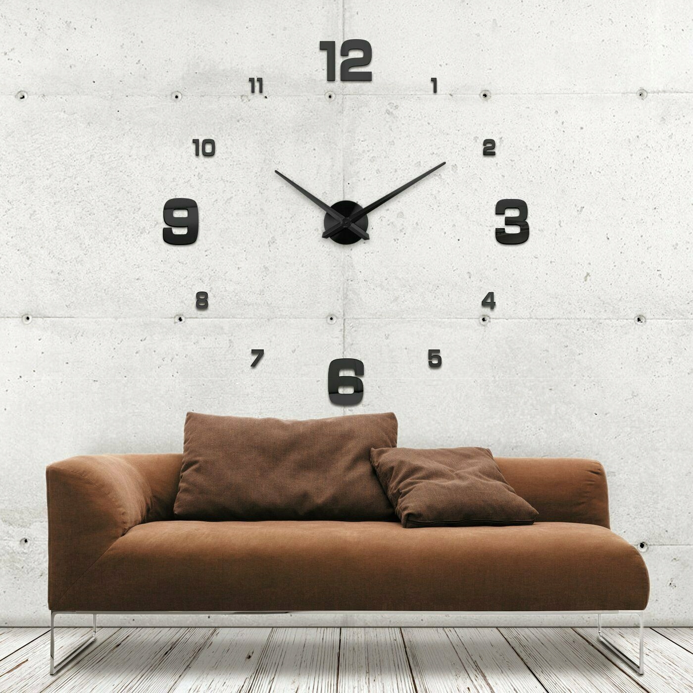 БОЛЬШИЕ 3D НАСТЕННЫЕ ЧАСЫ НАКЛЕЙКИ ЧЕРНЫЙ