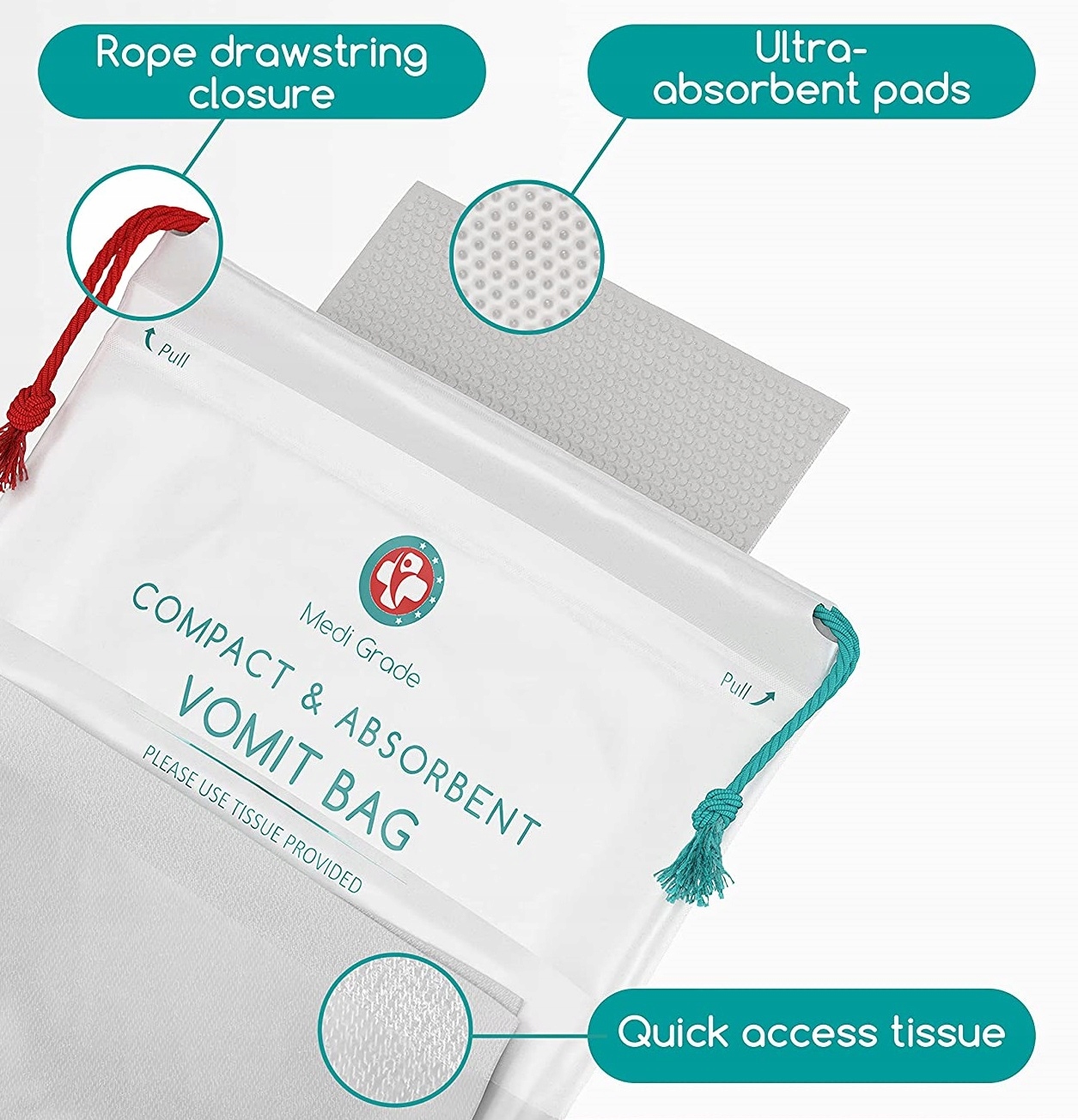 Поездка на автомобиле или автобусе при укачивании или беременности может оказаться одной из самых сложных ситуаций. Пакеты для рвоты Medi Grade — идеальное решение для герметизации рвотных масс до момента, когда их можно будет выбросить.