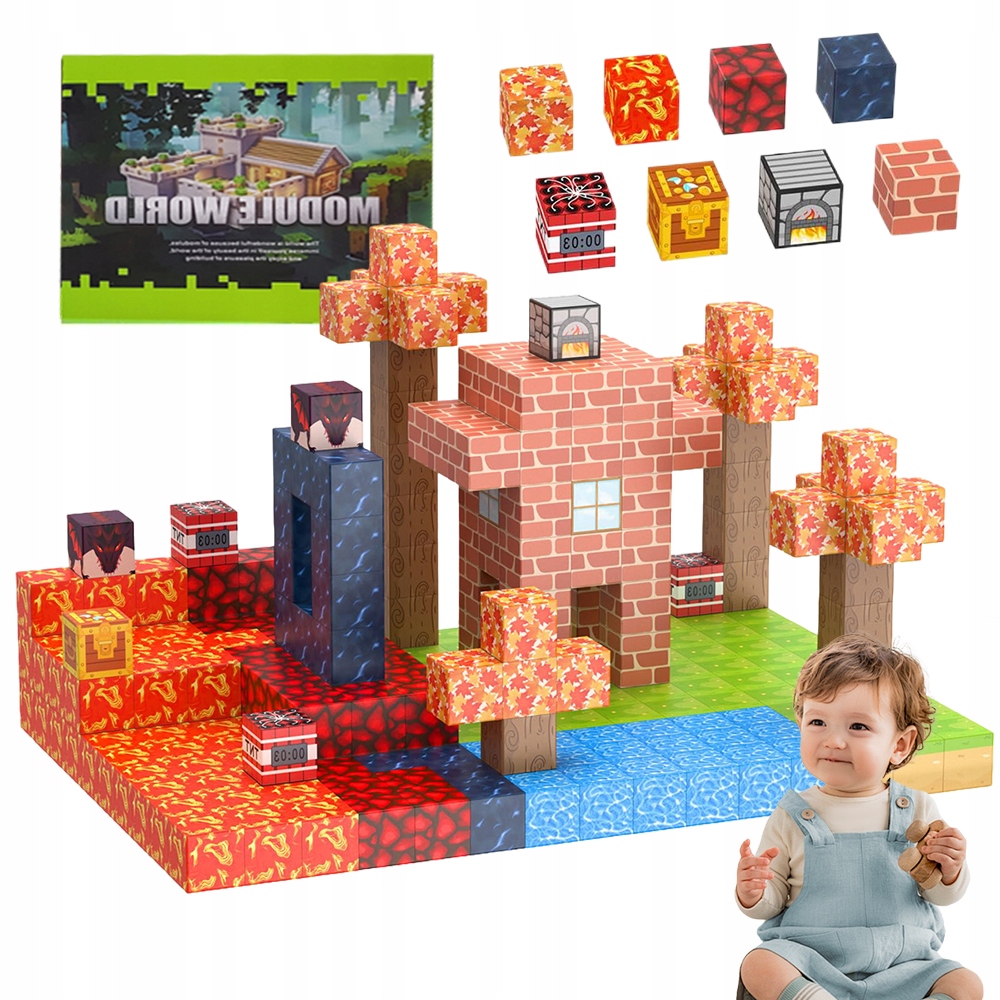 ✅Всего доступно 100 видов магнитных блоков, включая кирпичи, дерево, окна, воду, траву и другие элементы. Вы можете построить свой собственный мир.