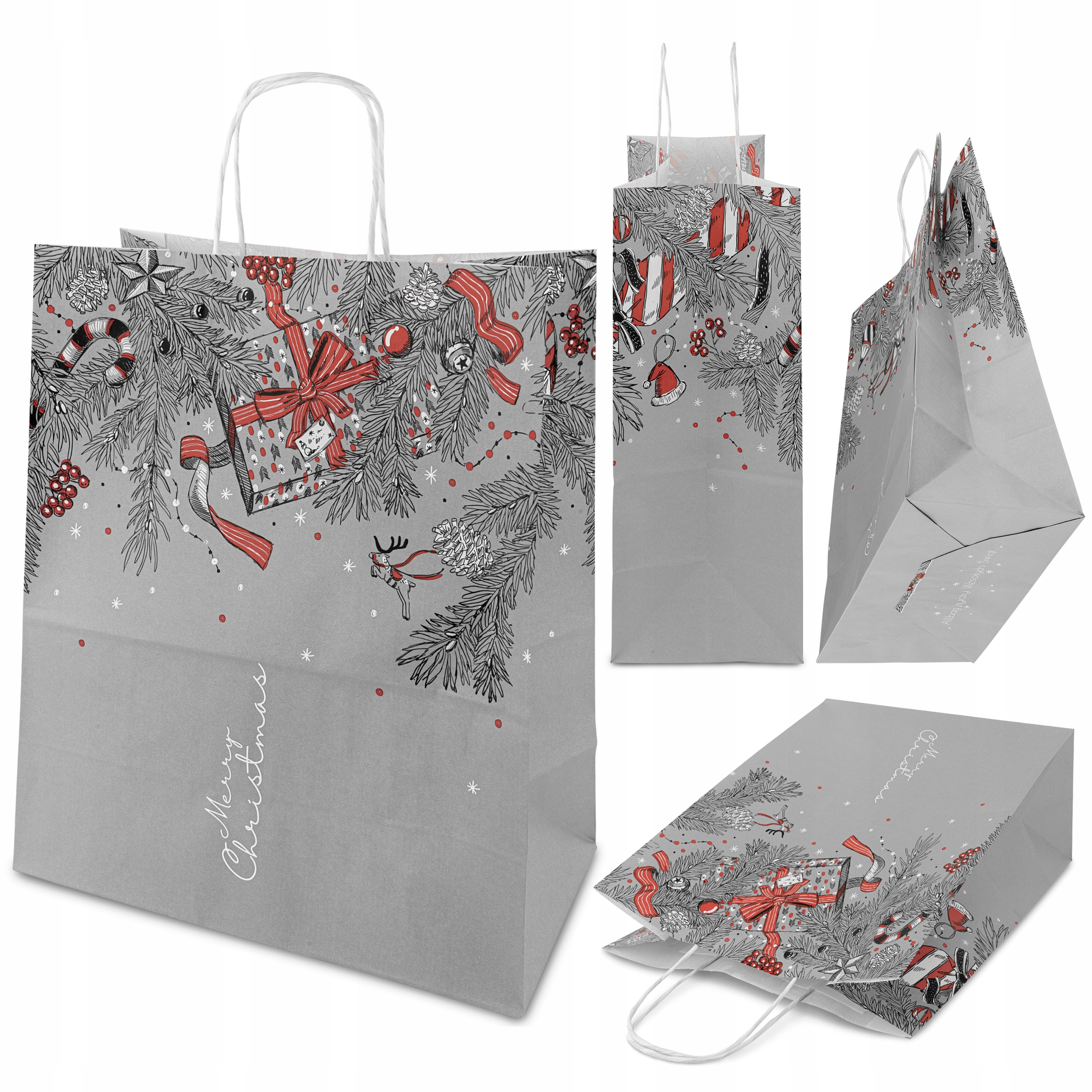 БОЛЬШИЕ РОЖДЕСТВЕНСКИЕ СУМКИ 32х16х38 см ПОДАРОЧНЫЕ ПАКЕТЫ БУМАЖНЫЕ ПАКЕТЫ 10 шт