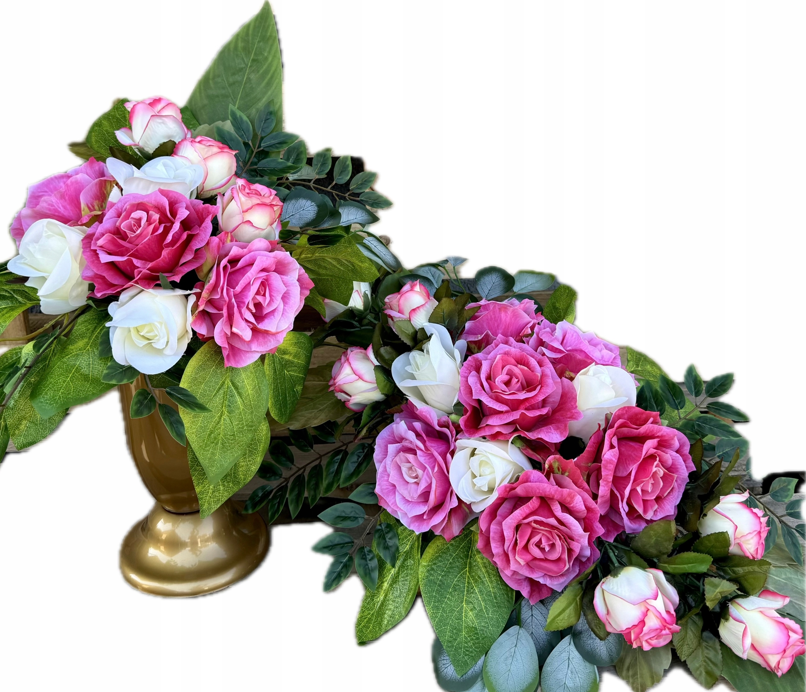 Уникальный надгробие в оттенках розового и экру с богатой рамой зеленых добавок: букет + букет. h1>