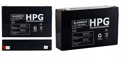 - Большая гелевая батарея напряжением 6В и емкостью 7Ач, срок службы около 300 зарядок.