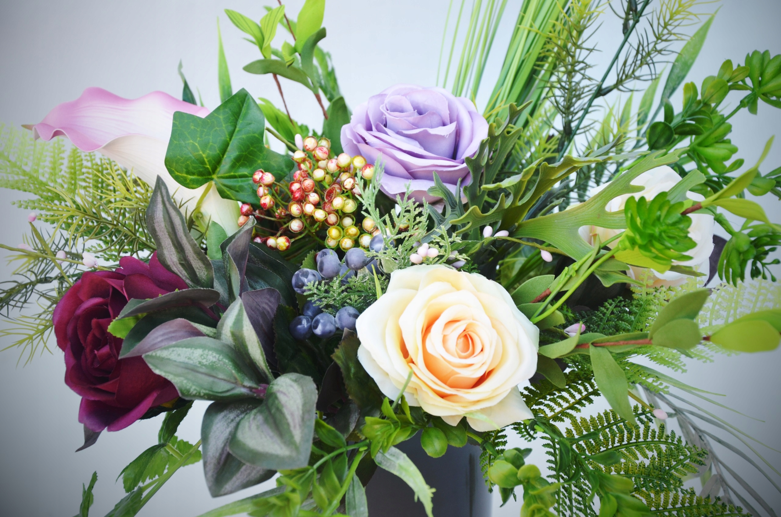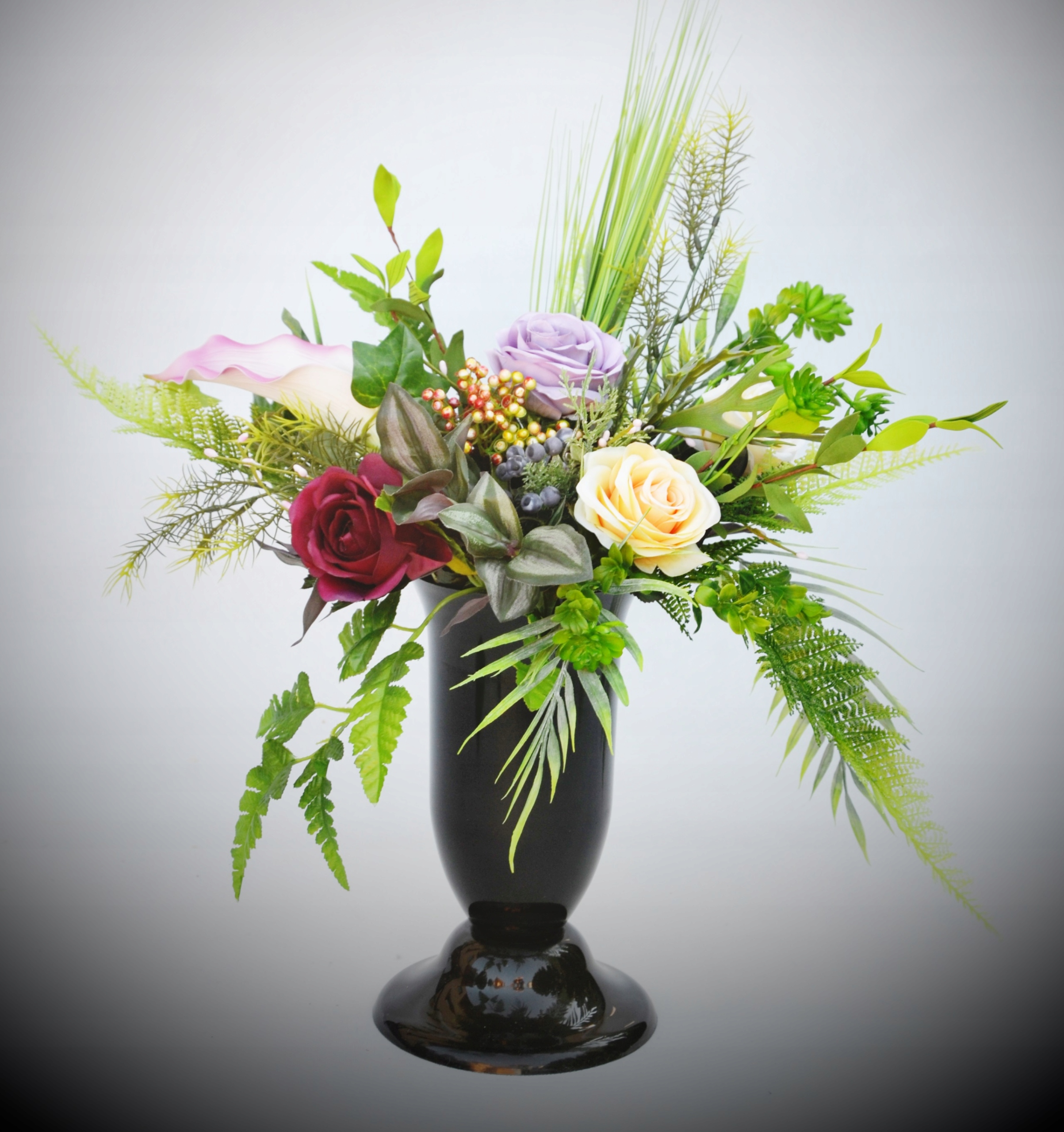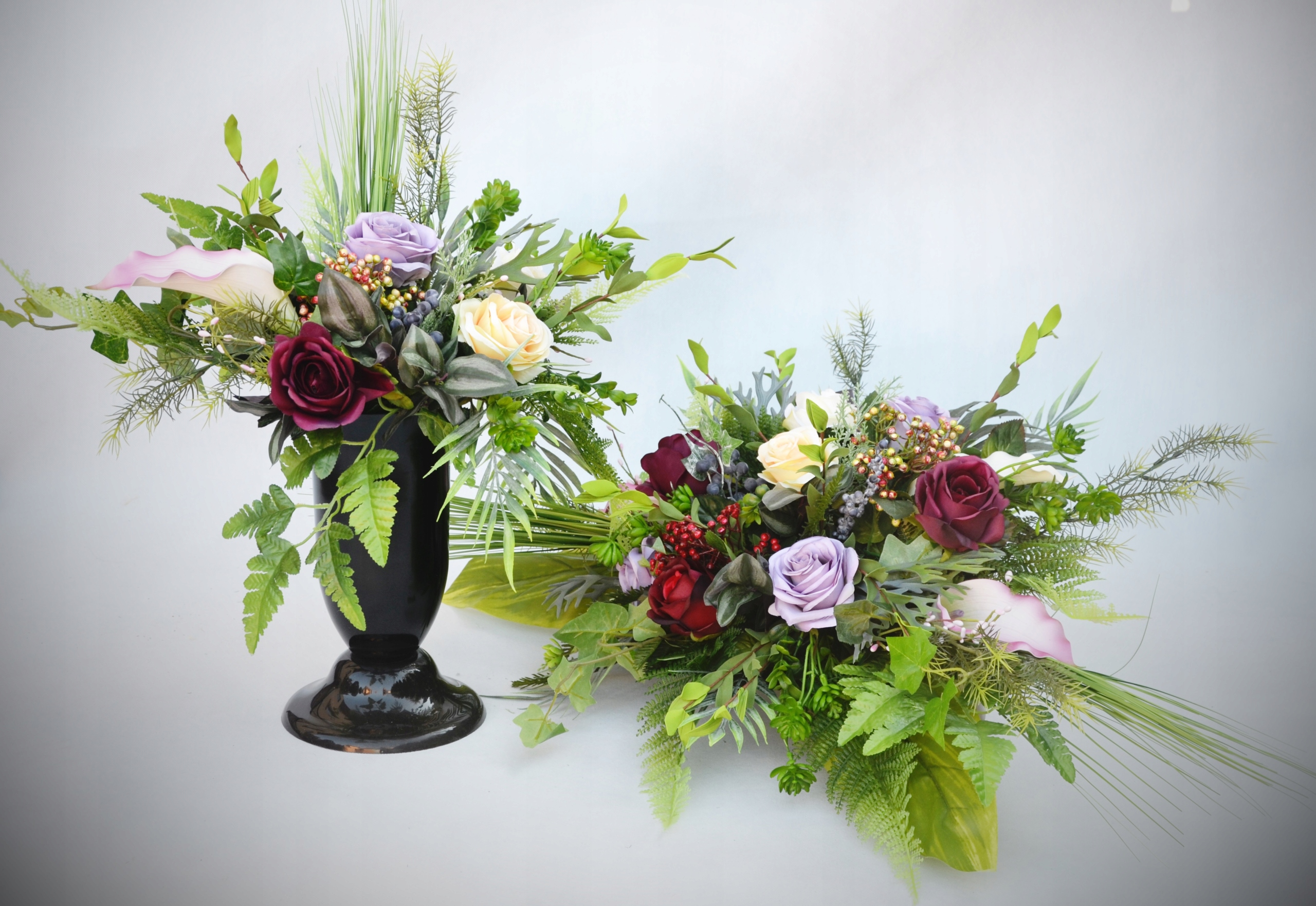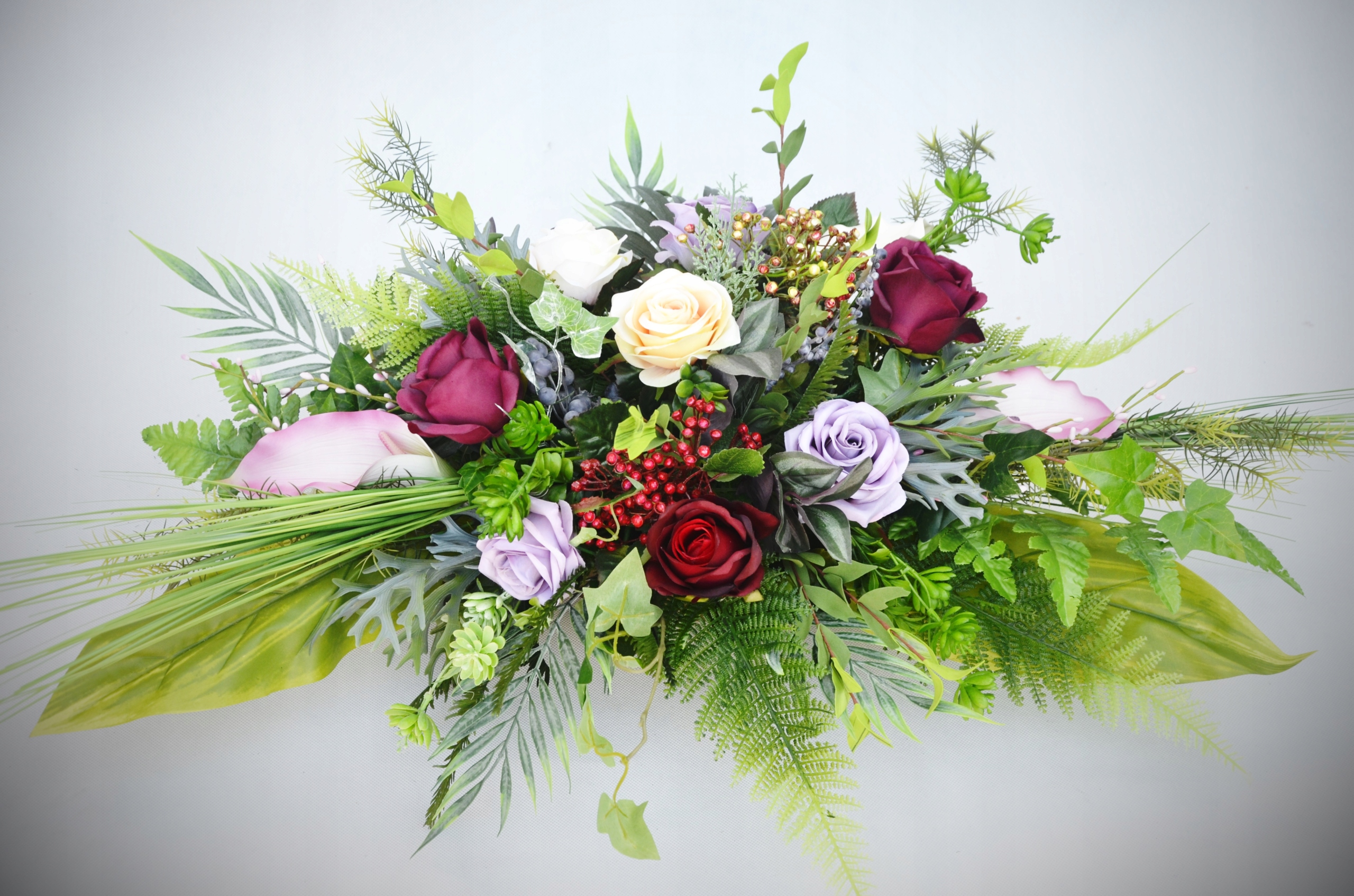 Букет красив, как живой, но на могиле он проживет гораздо дольше, чем срезанные цветы.