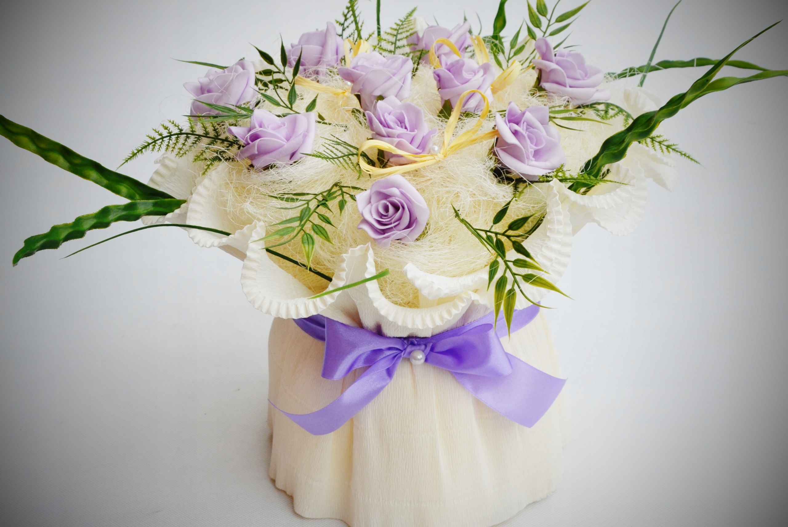 Оригинальный подарок на именины, день рождения или на пенсию. Красивый комплект полотенец в виде большого букета. Элегантный и практичный подарок.