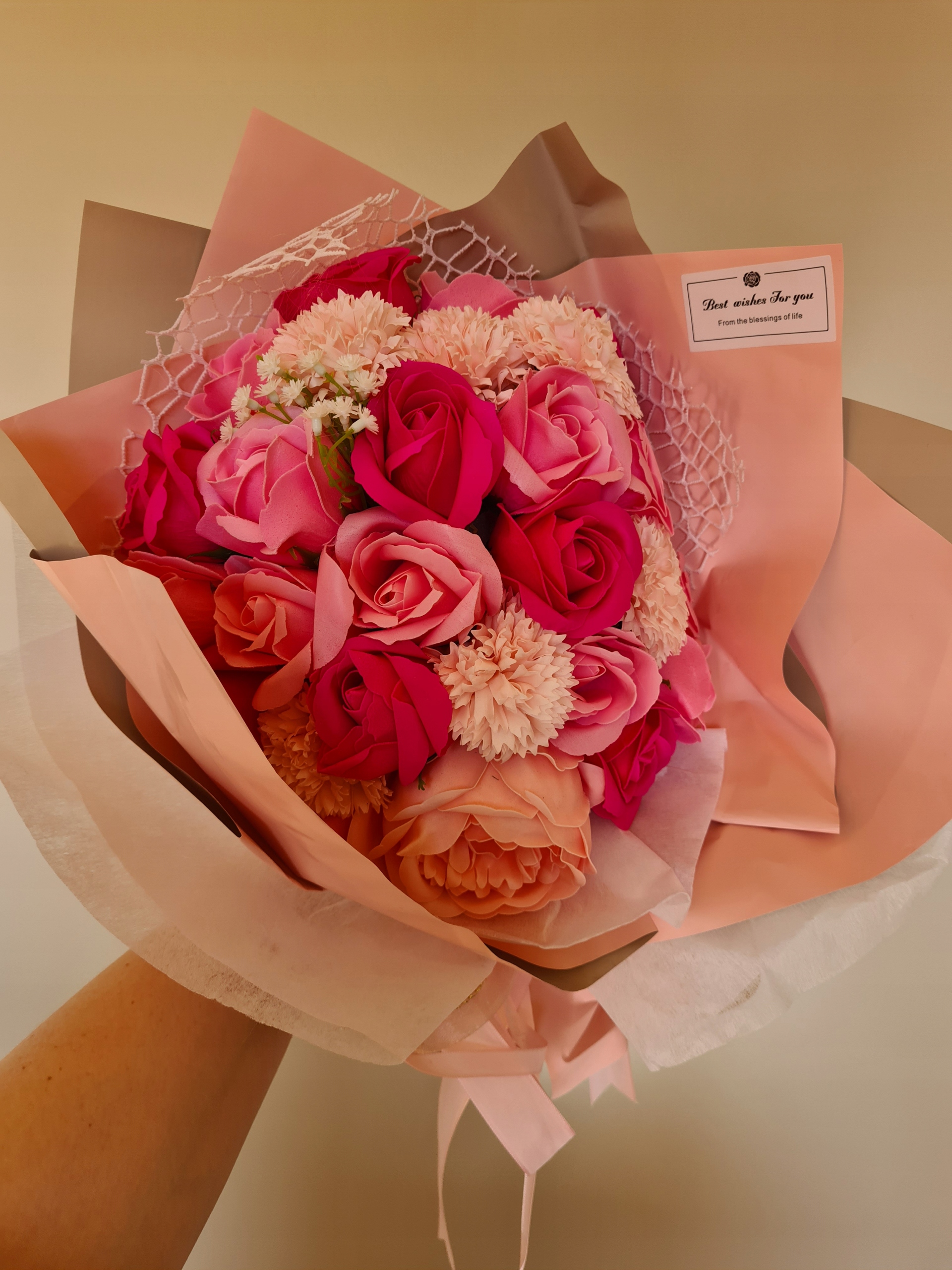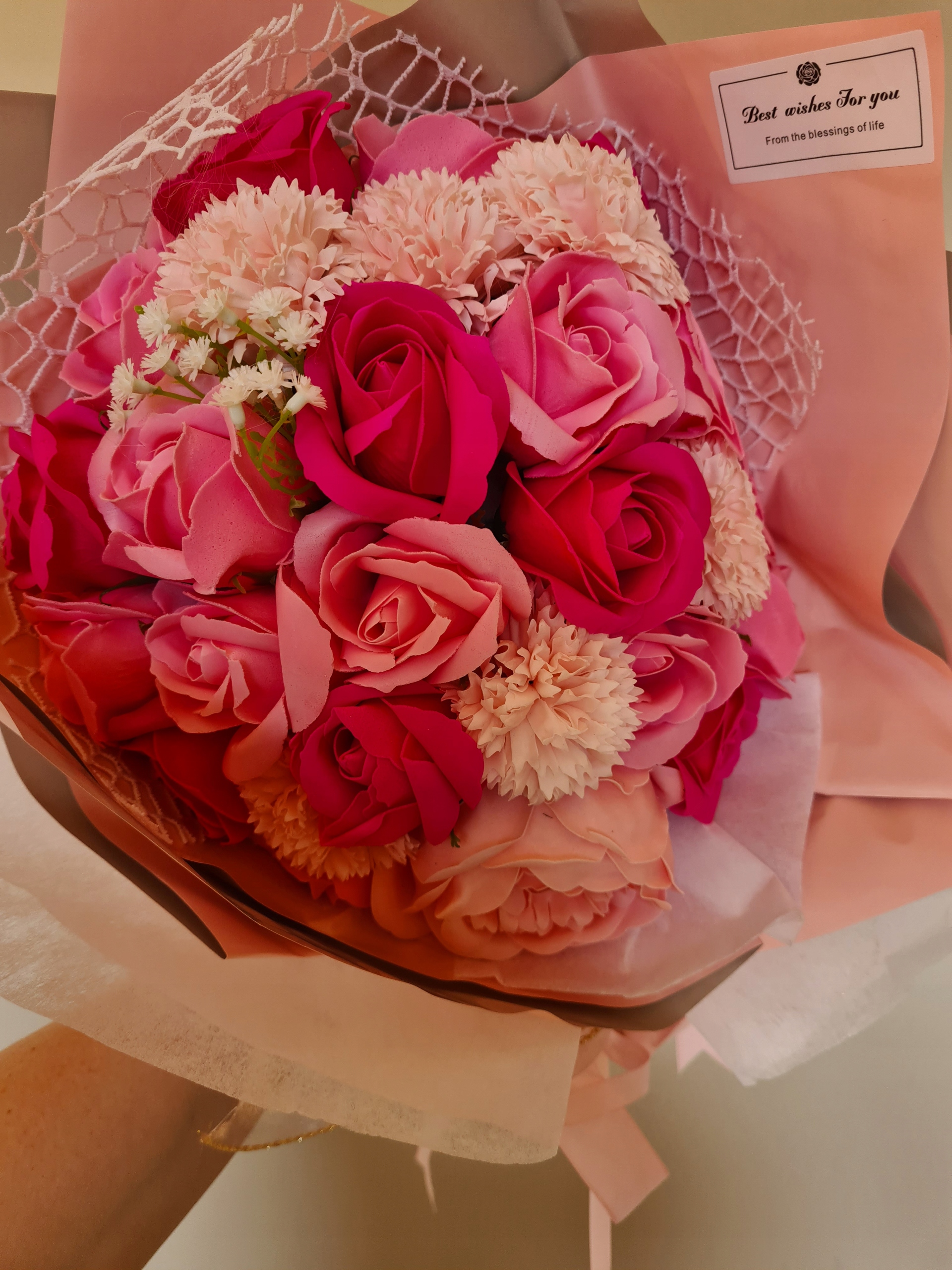 великий букет ВІЧНІ ТРОЯНДИ з мильними рожевими трояндами