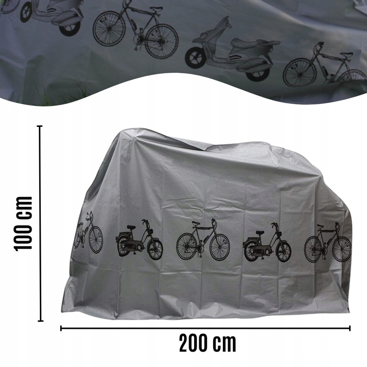 - благодаря размерам 200 × 100 см, обложка легко охватывает большинство велосипедов, скутеров или даже меньших мотоциклов. Peva