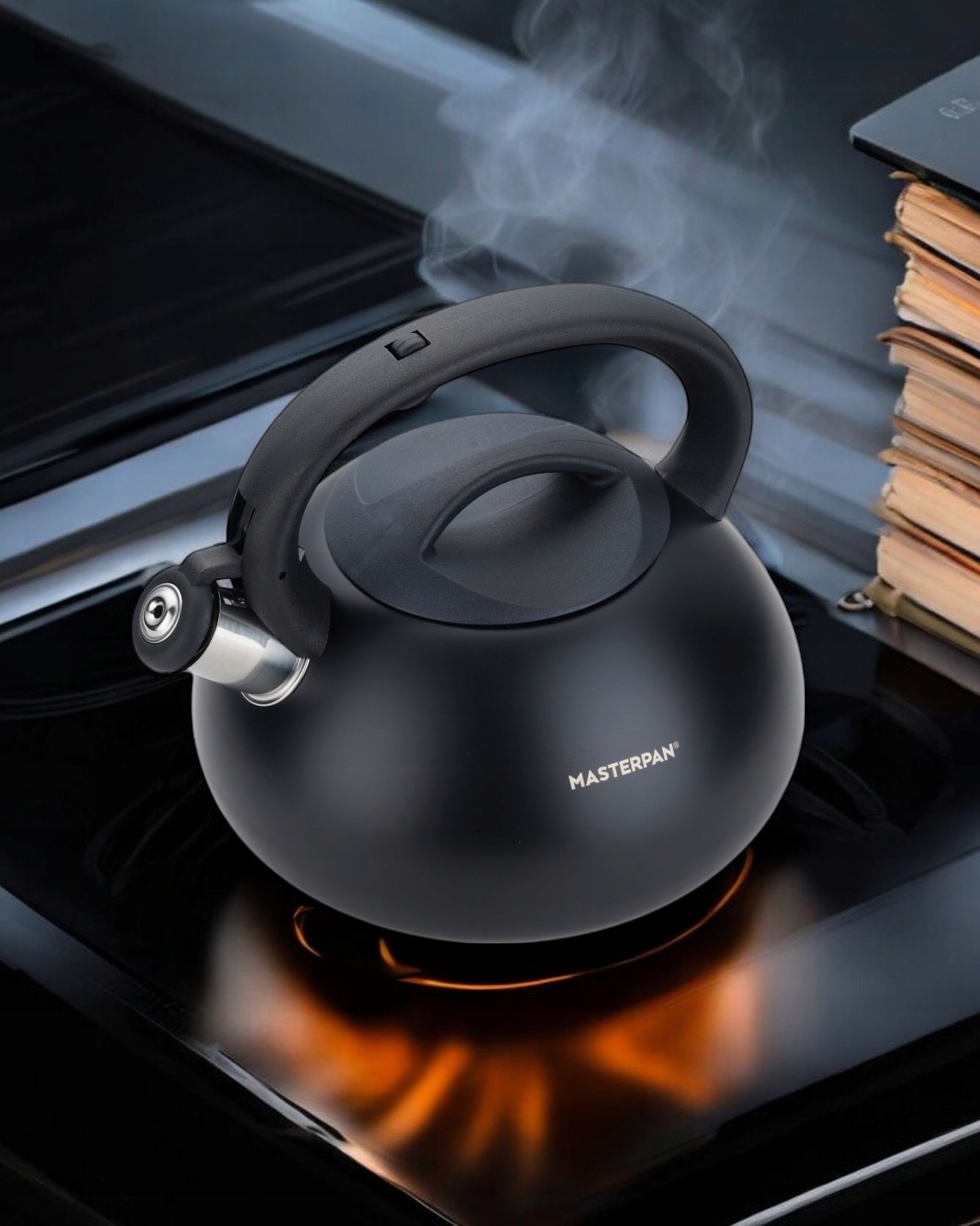 Черная стальная 3-литровая чайник с матовой отделкой и черной ручкой h2>