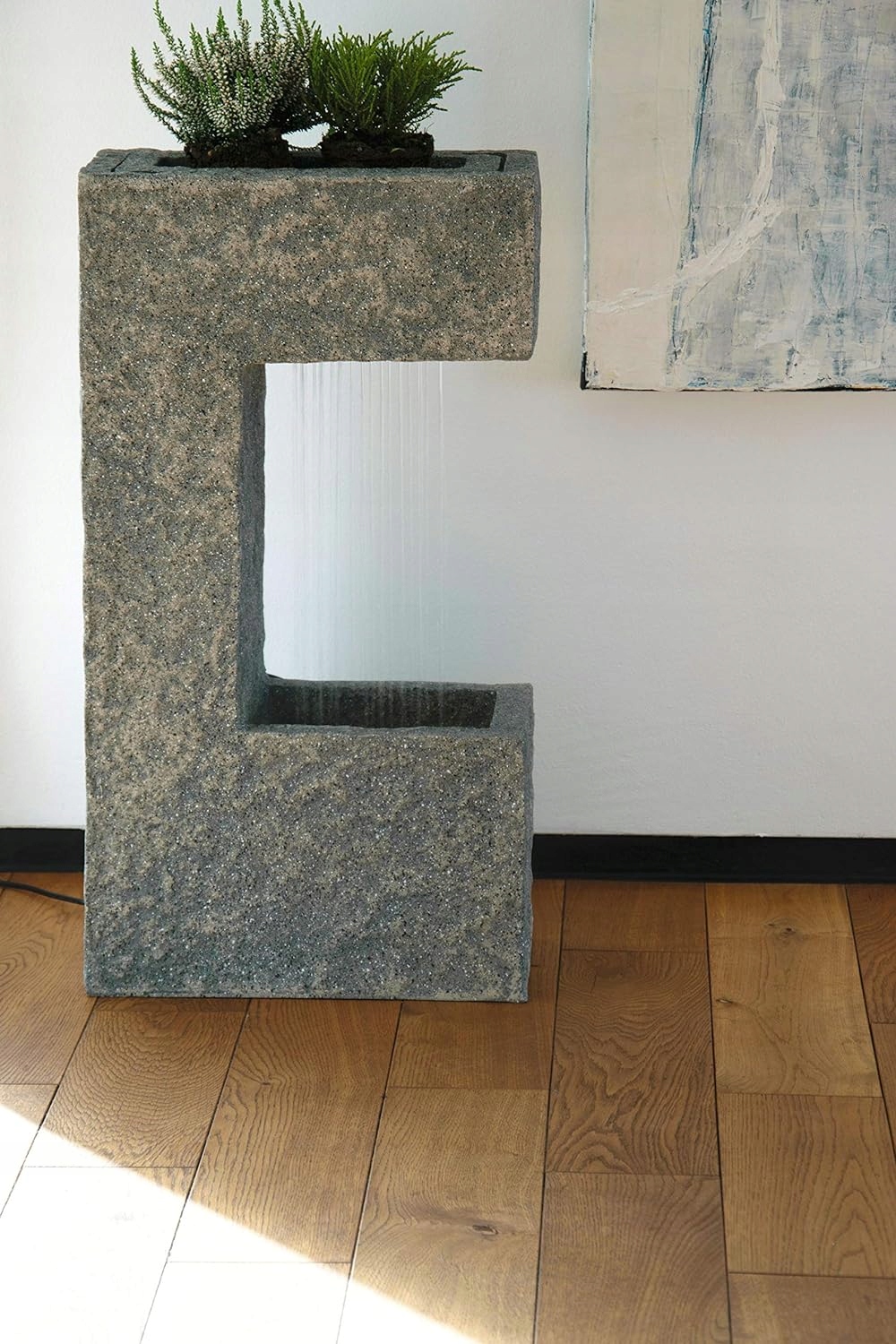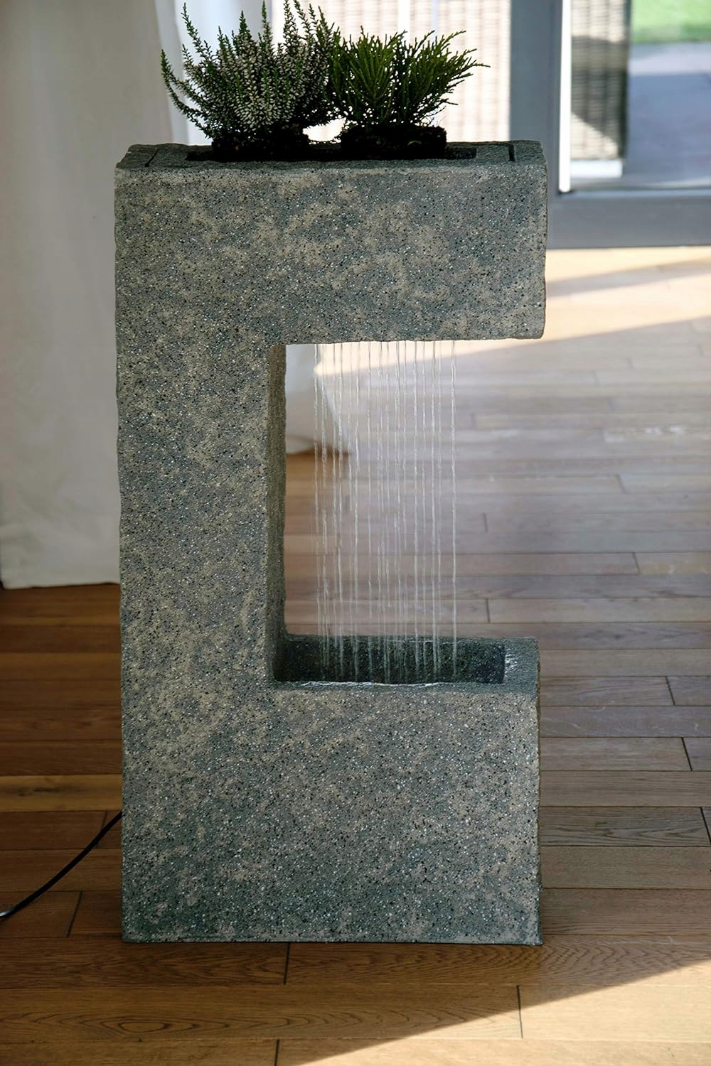 Большой дизайнерский садовый фонтан с насосом и светодиодами, декоративный водопад с ящиком для растений из искусственного камня, серый, 39 х 20,5 х 70 см