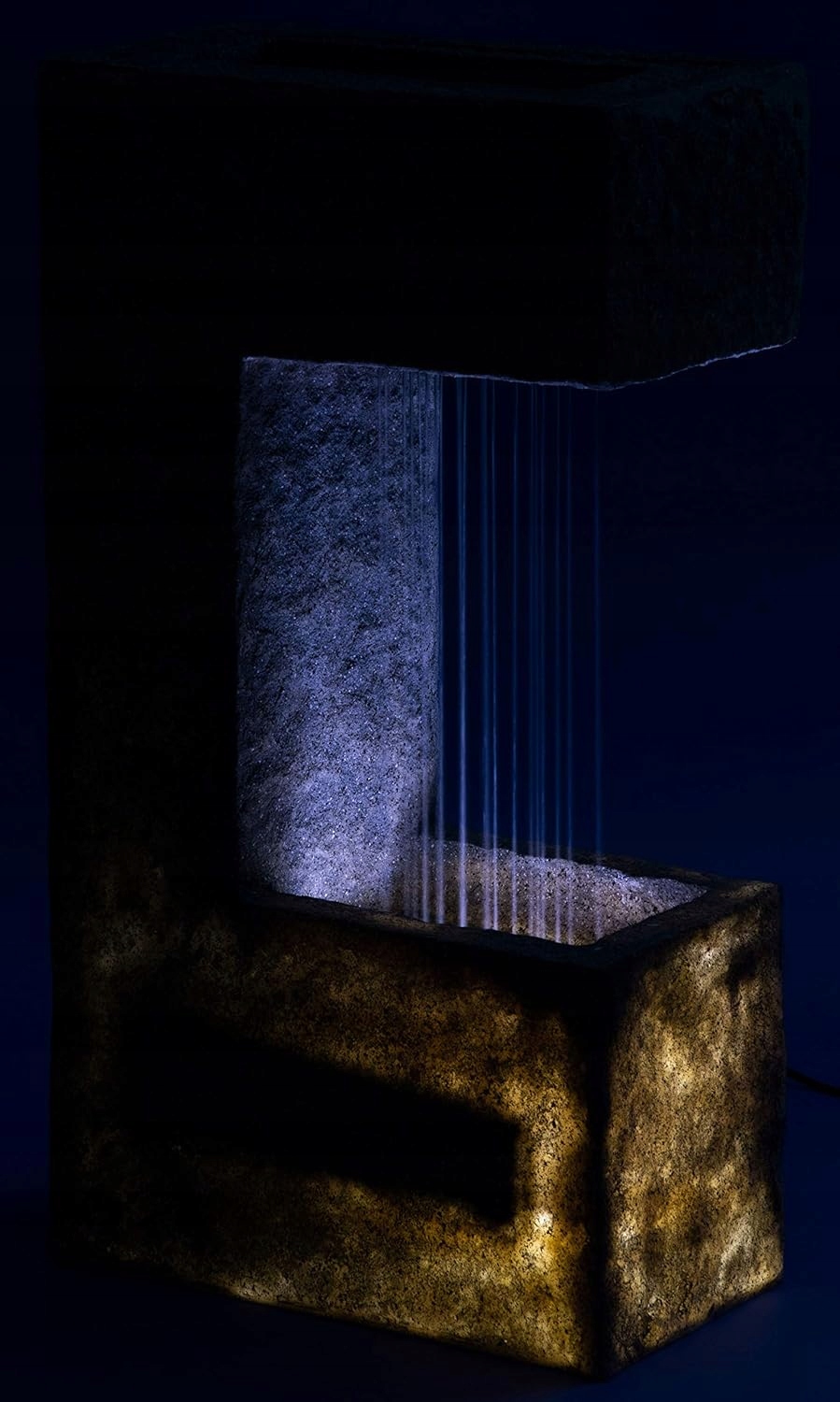 - Фонтан состоит из светильника , прочный и устойчивый к атмосферным воздействиям пластик из полиэфирной смолы (искусственный камень) с имитацией камня различных оттенков серого.