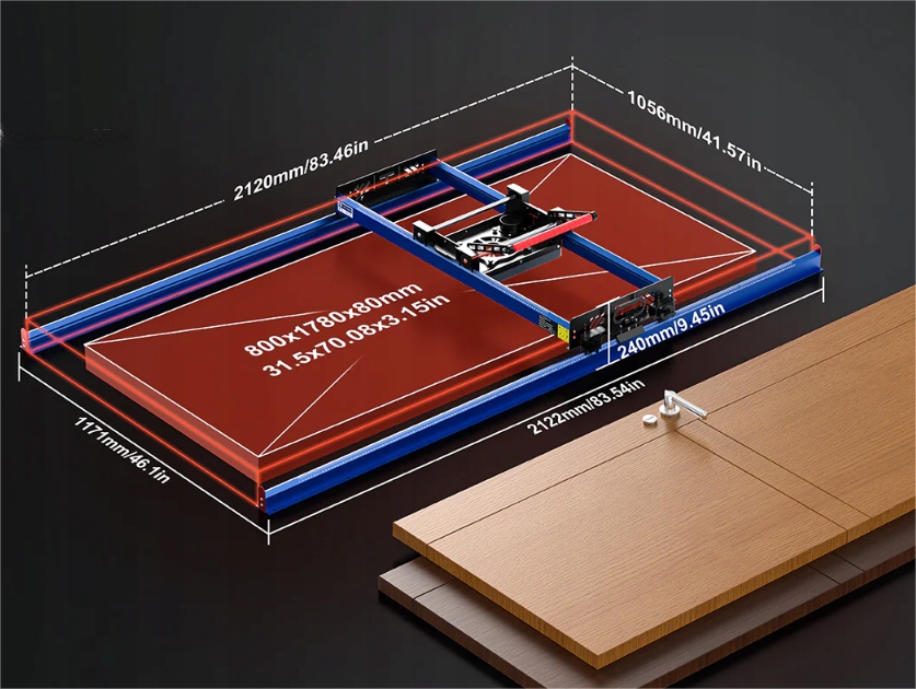 Рабочий диапазон: 800 мм x 1780 мм x 80 мм