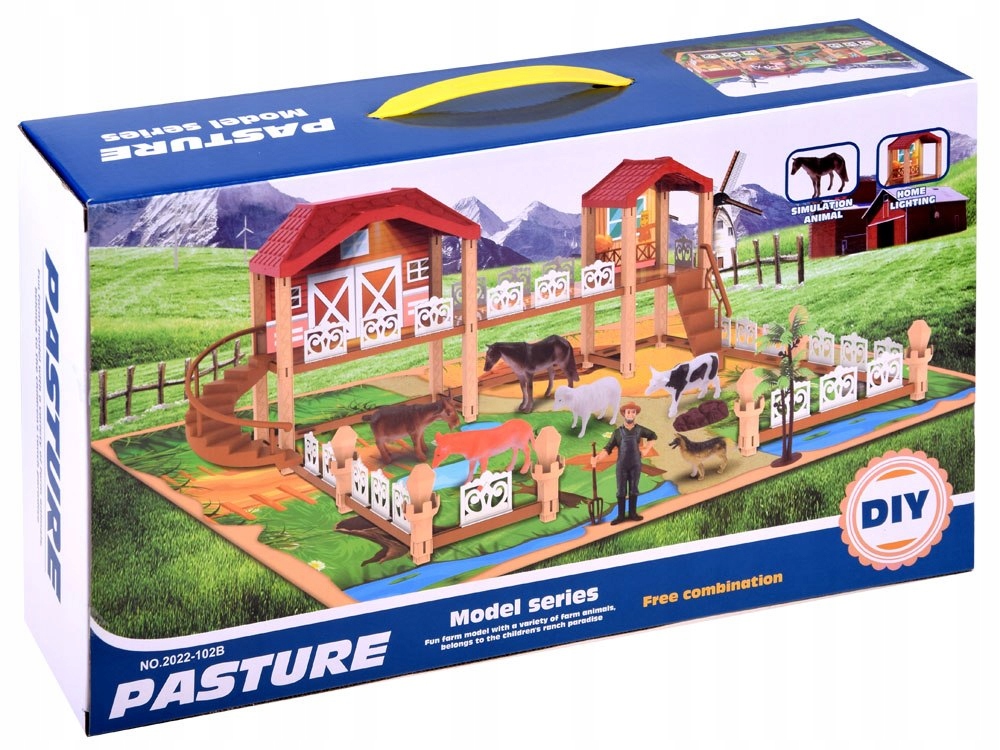 Большой фермерский набор 2 в 1 - отличная идея, чтобы показать нашим детям, как выглядит жизнь в сельской местности! У набора есть много возможностей, которые можно расширить двумя разными способами, создавая большое поле для творчества вашего ребенка. Малыш сможет сыграть роль фермера и чувствовать себя настоящим владельцем фермы. Большая бумажная доска, подражающая траве, дорожке и озеру, является площадью вашего участка, вы можете построить на нем большую конюшню, а также ферму для ваших животных, чтобы они не убегали. Отличное дополнение - это свет, которые осветят ферму вечером, чтобы животные чувствовали себя в безопасности. Благодаря этой игрушке ребенок будет развиваться, воображение, ручную эффективность и координацию рук. Это очень весело, что вся семья и друзья могут присоединиться! На ферме много всего, вы должны позаботиться об экономике, кормить животных: помадку, лошадь, утка и котенок. С этим набором ребенок может узнать реалии жизни в сельской местности.
