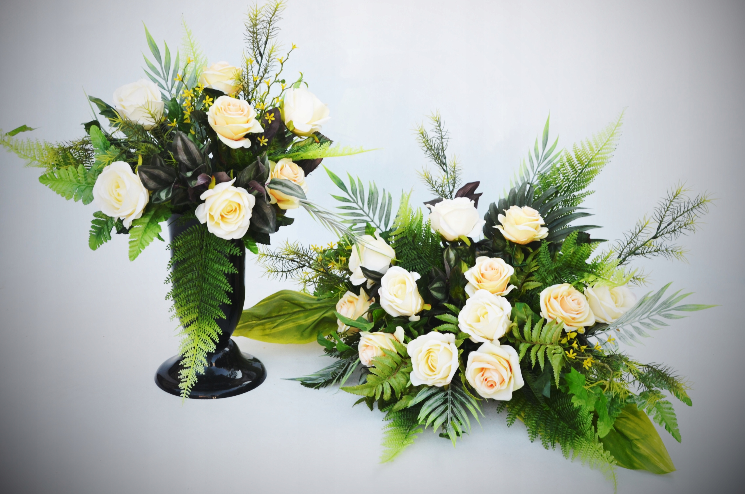 Большой, богатый, красивый букет на могилу в комплекте с букетом из искусственных цветочных аксессуаров высочайшего качества.< /h1>Букет и букет прекрасны, как жизнь, но они останутся красивыми и свежими на могиле гораздо дольше, чем срезанные цветы.