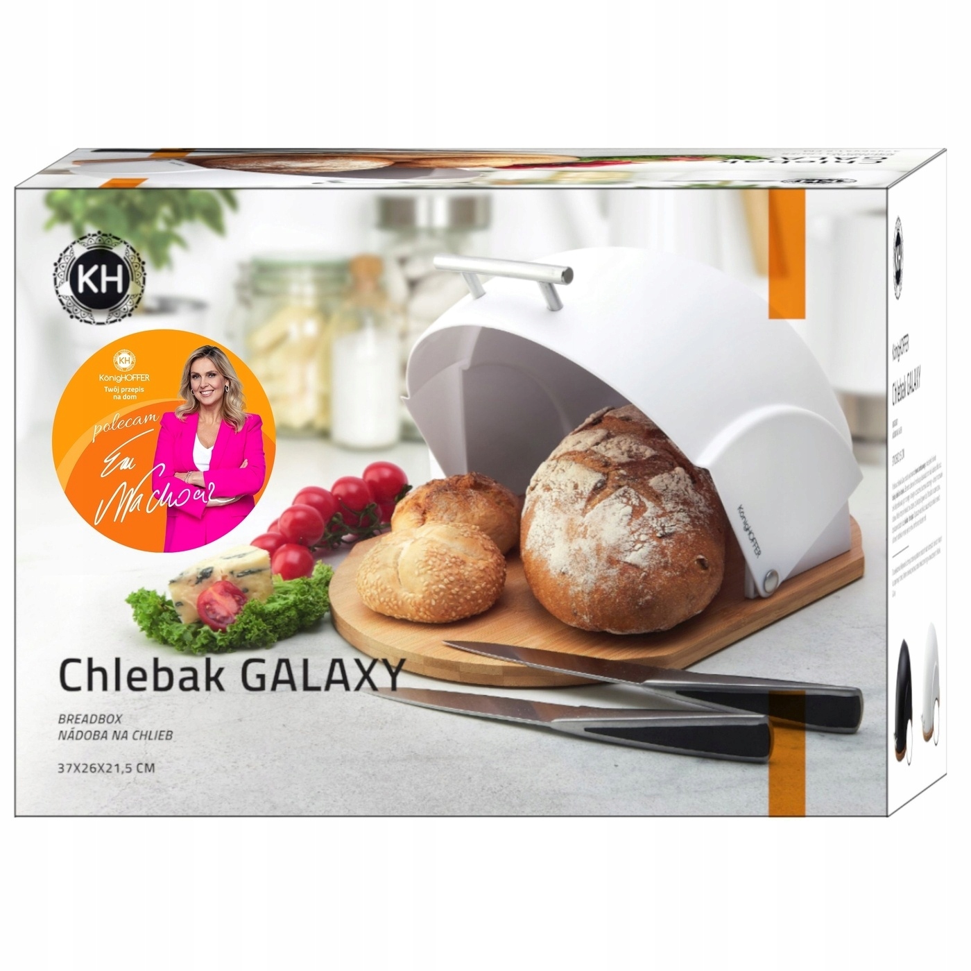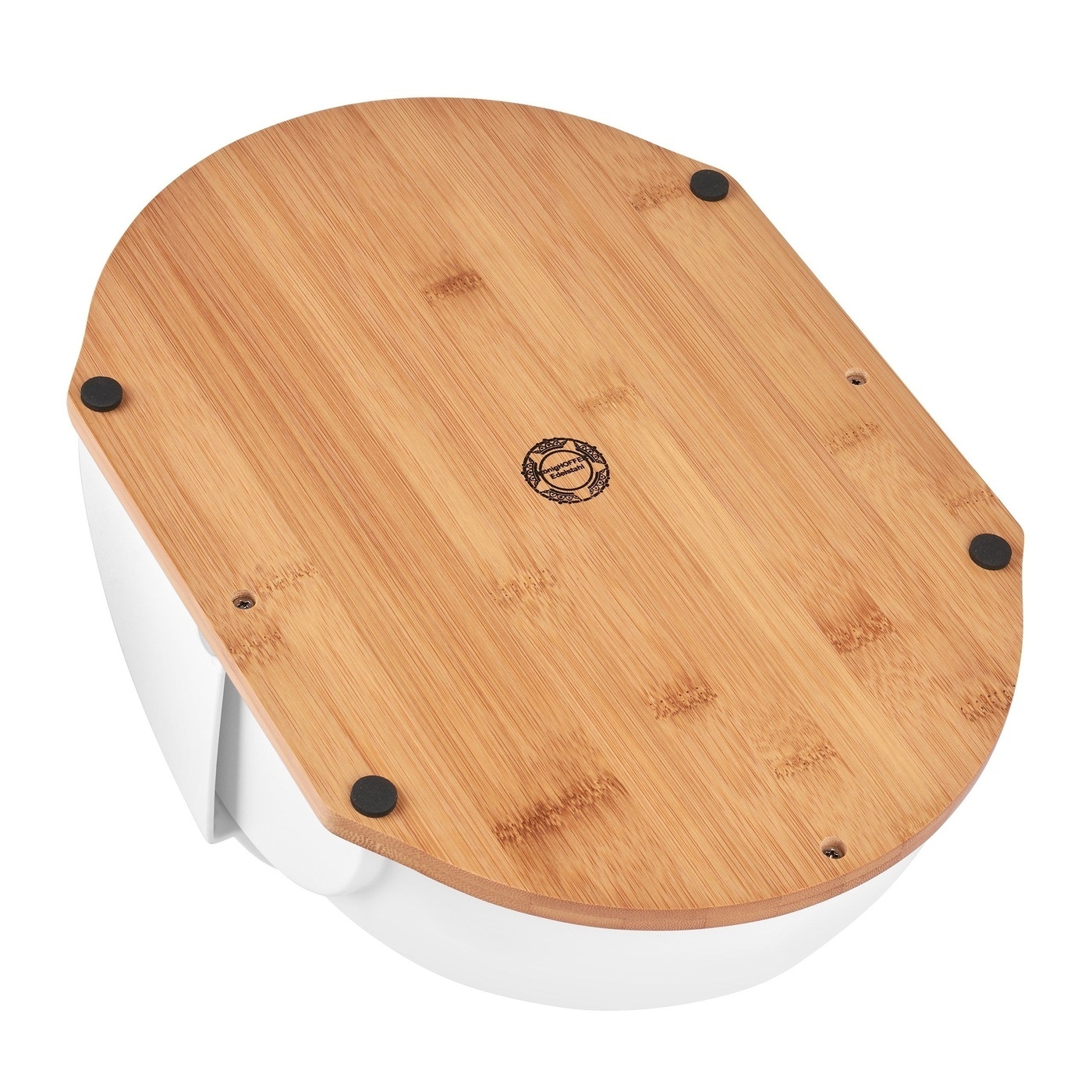 Оригинальный дизайн с использованием бамбукового дерева. Прочная конструкция, устойчивая к случайным механическим повреждениям. Легкий и удобный доступ к хлебу. Легкий и прочный – изделие изготовлено из качественного пластика. Элегантный и современный одновременно. Конструкция обеспечивает устойчивое положение на кухонной столешнице (нескользящие стопоры). Продукт рекомендует Ева Вахович. Как амбассадор бренда Konighoffer, она горячо и с улыбкой рекомендует его для домашнего использования. Вместе с ним вы получите свой рецепт для дома. Это один из лучших вариантов в этой категории!