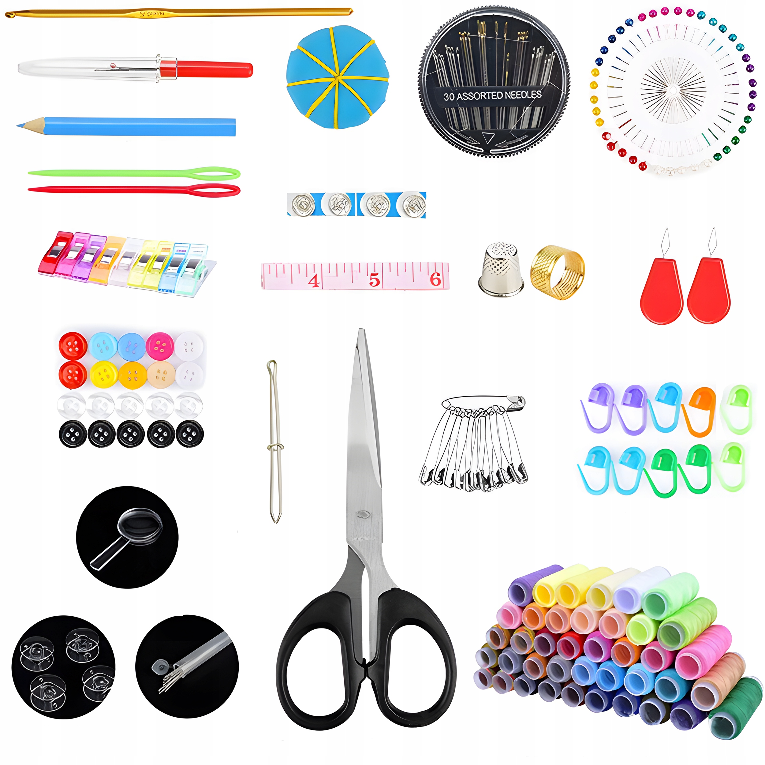 БОЛЬШОЙ НАБОР ДЛЯ ШВЕЙНЫХ ИГЛ, НОЖНИЦ, НИТИ, 226 ПРЕДМЕТОВ.
