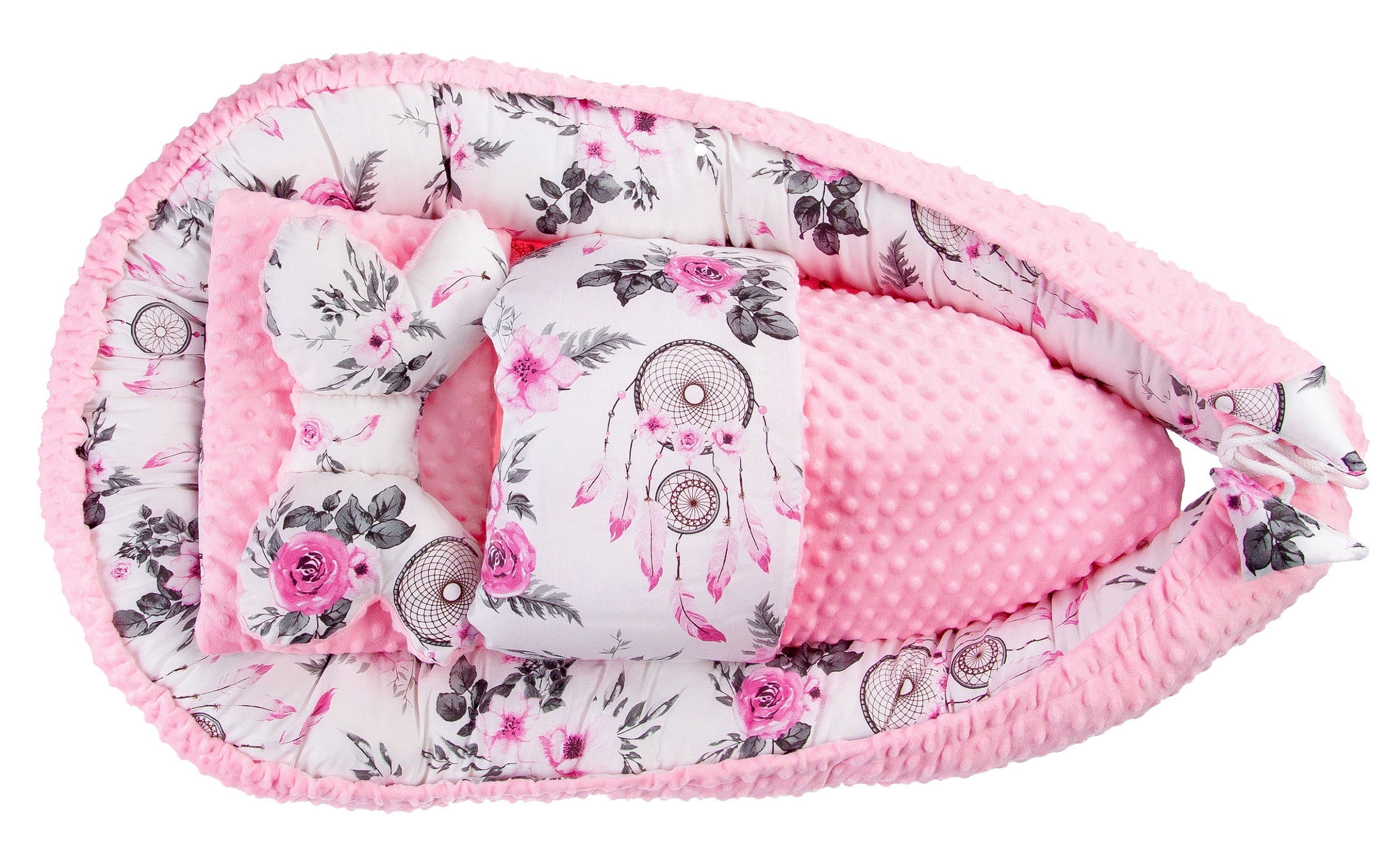 Кокон идеально подходит для использования в кроватке в качестве спального гнездышка (приподнятые бортики облегчают укладывание малыша на бок), у родителей ' кровати, на полу, на диване или во время путешествия., на прогулке в коляске, в саду и везде, где нам нужно разместить ребенка в безопасном и удобном месте.
