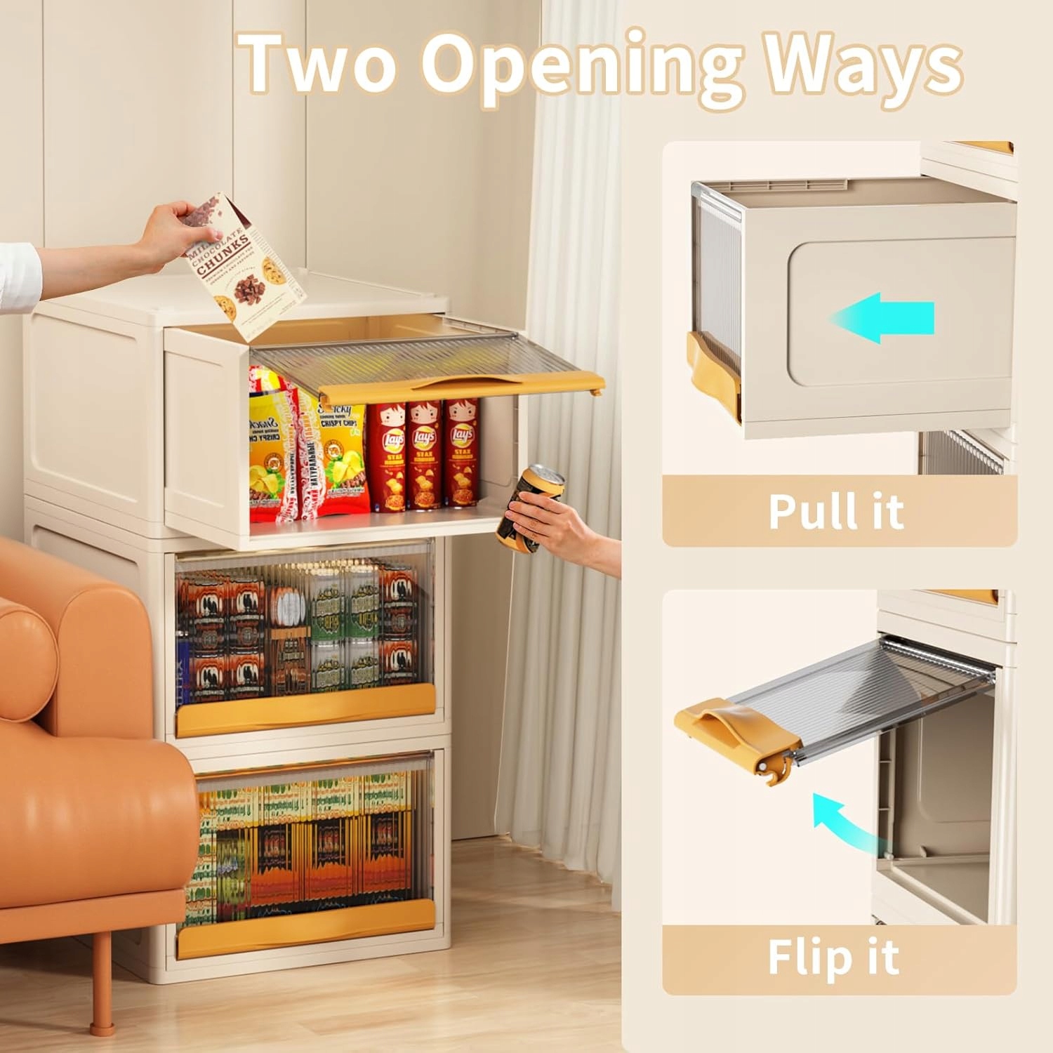Два уникальных способа открытия — переднюю крышку ящика для хранения можно снять и растянуть горизонтально в пространстве верхней крышки или в вся внутренняя коробка как ящик. Уникальный дизайн ящика для хранения ящиков HAIXIN предлагает вам больше возможностей для хранения вещей дома.