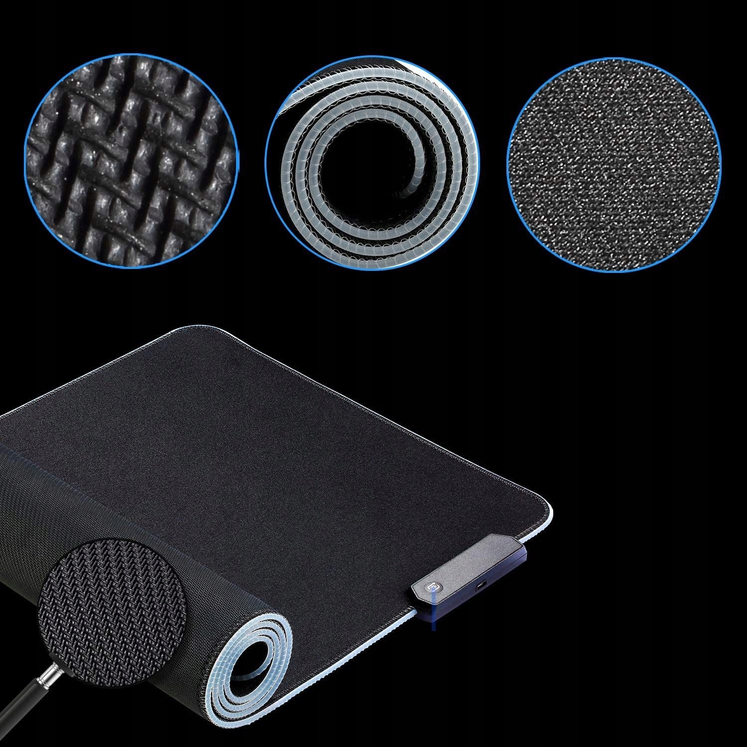 - Коврик для мыши — это продукт, который защитит ваш стол. Поверхность коврика выполнена из мягкой ткани, что обеспечивает адекватное скольжение и точность движений. Нижняя часть подушечки изготовлена из нескользящего резинового материала, что обеспечивает высокую устойчивость во время использования. Он также оснащен боковой RGB-подсветкой, что придает ему игровой характер. Подушка имеет прошитые края, что повышает износостойкость, ее размеры составляют 80 х 30 см.