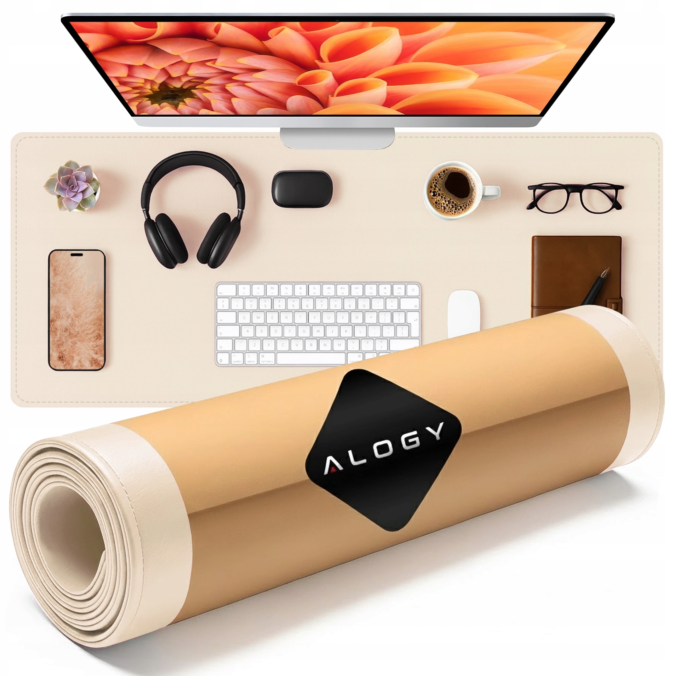 ▶️ Подставка для стола 80х40 см Alogy WorkMat™ PU кожа Бежевый - Всегда чистая и эстетичная столешница!