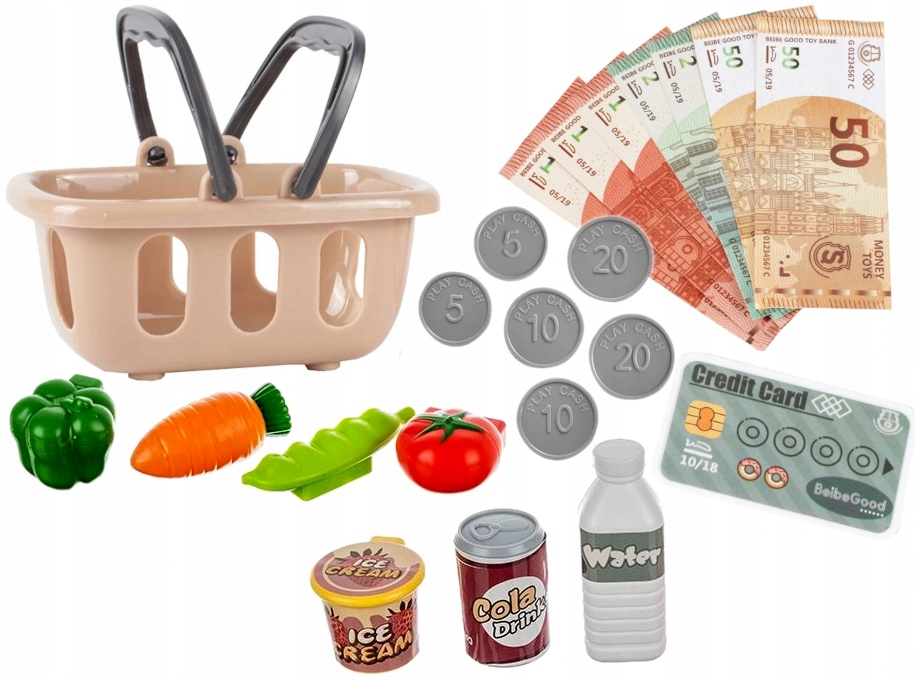 В комплект входят деньги в виде монет и банкнот, а также платежная карта, благодаря которой ребенок может оплачивать покупки тем способом, который он выберет.
