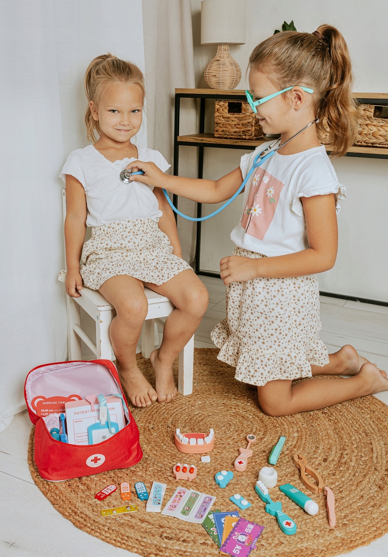< б>Игра в доктора или дантиста — отличный способ для ребенка познакомиться с инструментами и избавиться от страха посещения врача или стоматолога. Это также отличное обучение и развлечение, которое разовьет у ребенка чувство сопереживания. и чуткость, забота о здоровье своих близких с ранних лет.