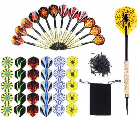 - 12 дротиков с уникальным дизайном – с различными узорами на крылышках, в том числе: пламя, пауки и динамические линии, которые добавят стиля вашей игре.