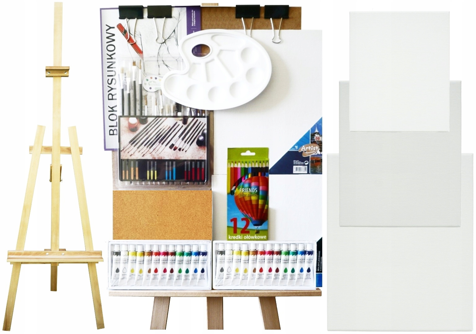 БОЛЬШОЙ НАБОР ДЛЯ РИСОВАНИЯ КРАСКИ КИСТИ МОЛЬБЕРТ ПАЛИТРА