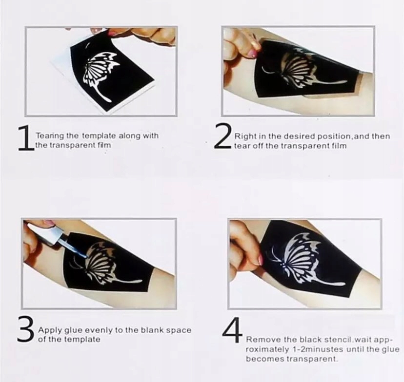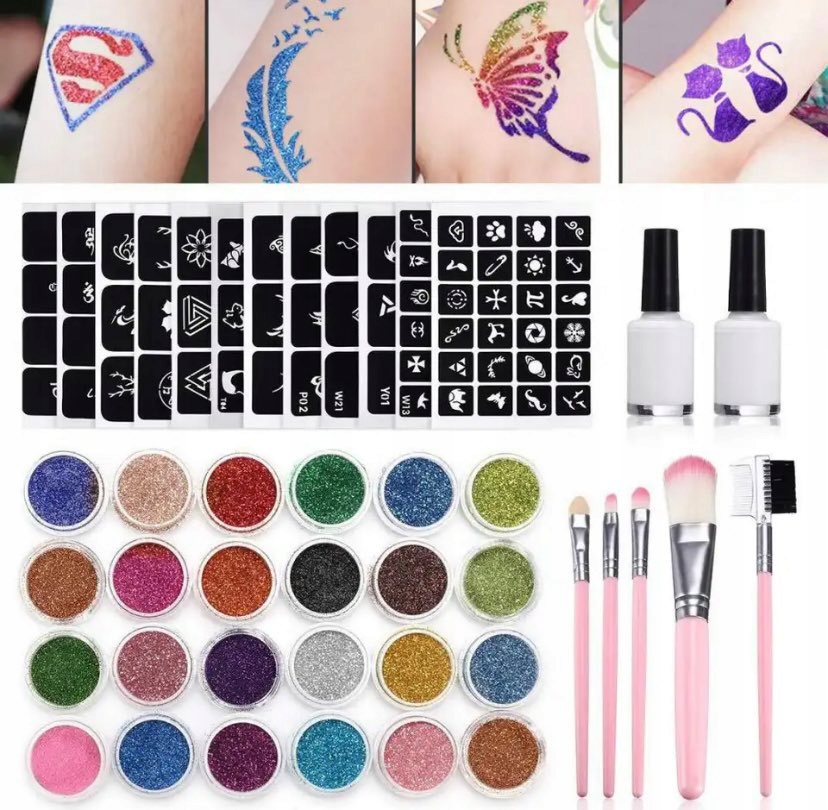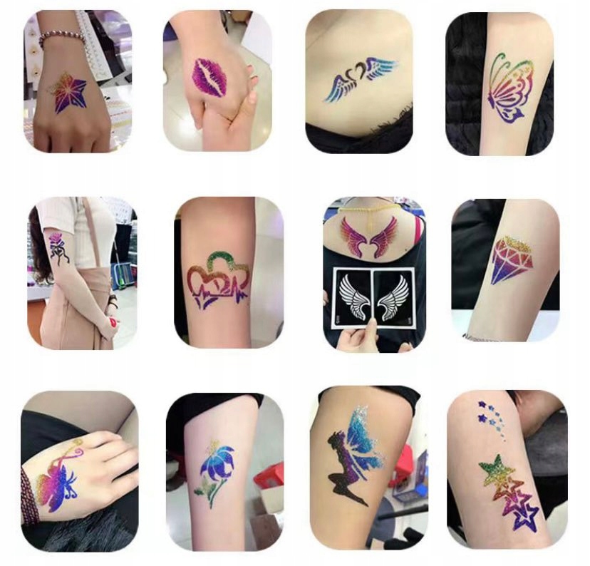 БОЛЬШОЙ НАБОР ДЛЯ ТАТУ, ШАБЛОНЫ С БЛЕСКАМИ