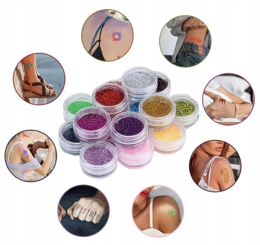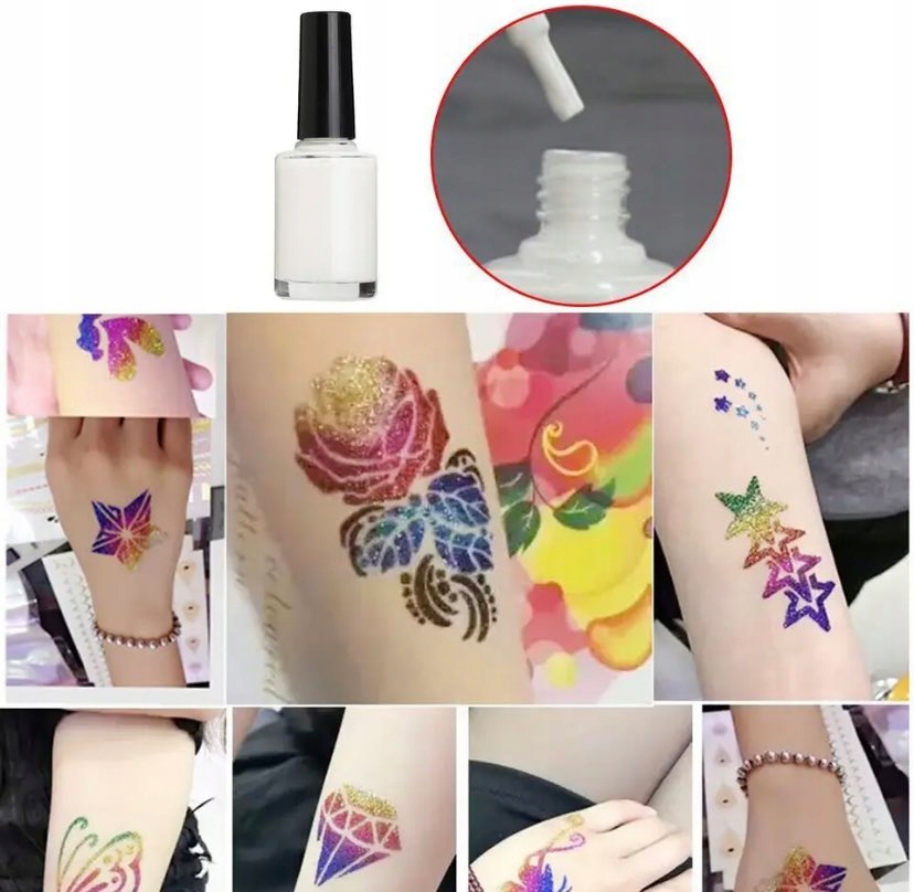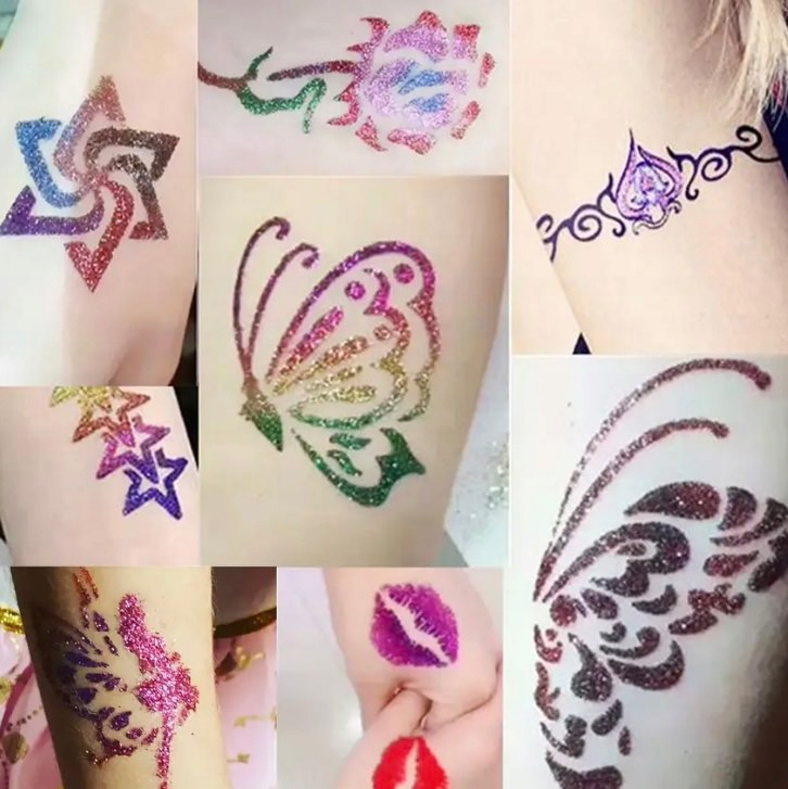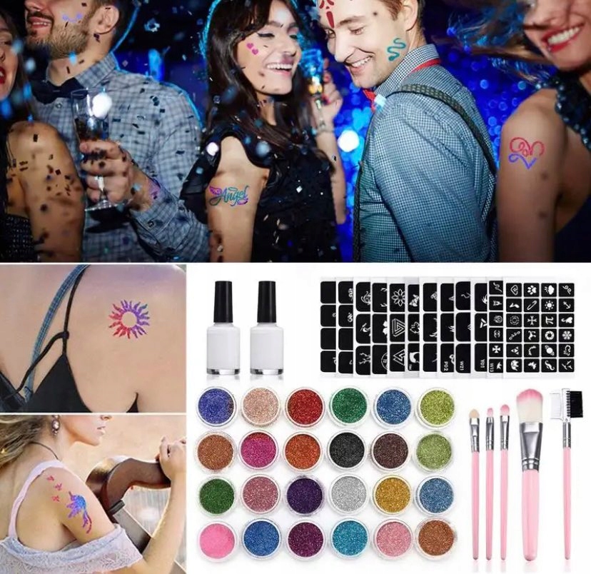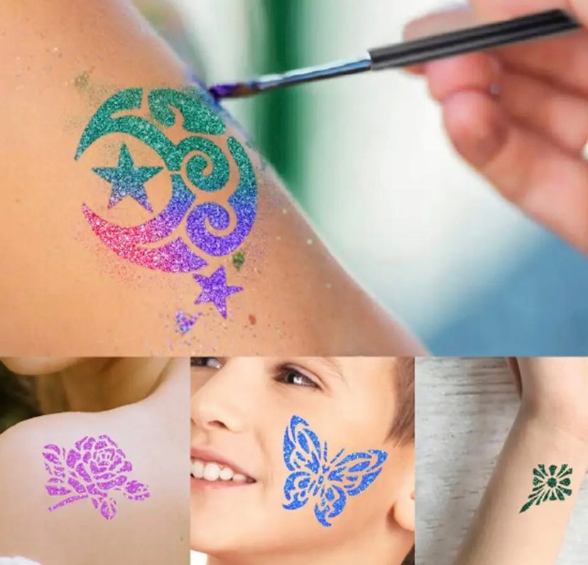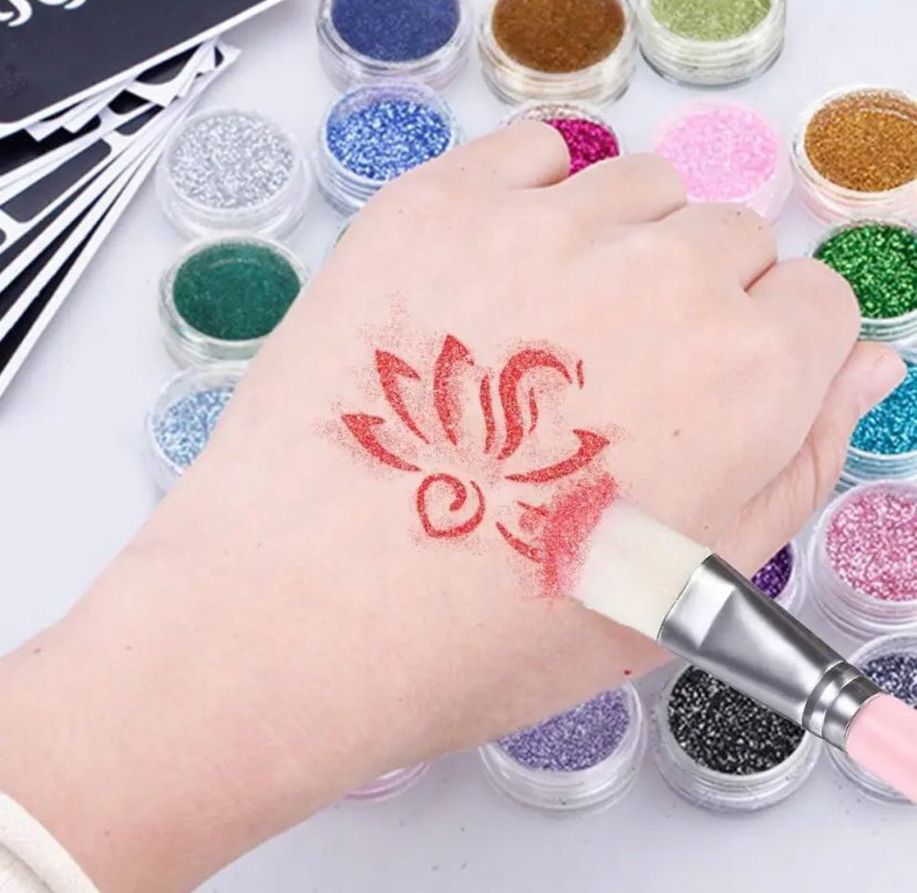 ✅Необходимые аксессуары: В набор также входят кисточки, которые облегчают нанесение блесток и позволяют точно создать татуировку.