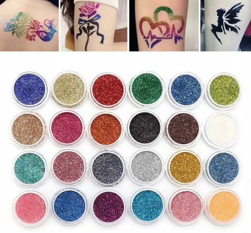 ✅Большой выбор цветов и блесток: В наборе 24 блестки разного цвета, которые придаст блеска и волшебства татуировкам. Дети могут выбирать разные цвета и эффекты, создавая разнообразные узоры.
