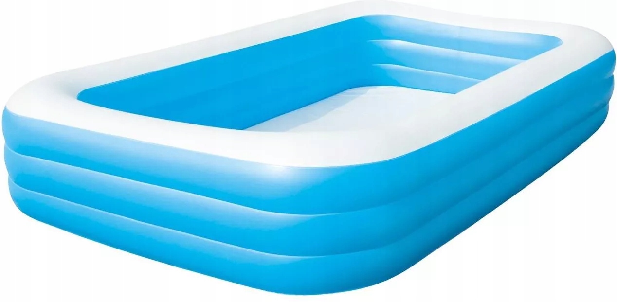 ✔️ СПЕЦИФИКАЦИЯ - Код товара Bestway: 54009; материал: винил; конструкция: 3 равных кольца/широкие боковые стенки/сливной клапан для опорожнения; цвет: синий и белый; возраст: от 6 лет; вместимость: 1161 литр; размеры (длина/ширина/высота): 305x183x56см; вес: 7 кг.