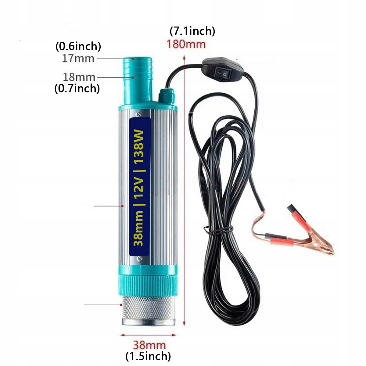 12 В 38 мм 30 л/ мин. Насос автомобильного насоса из нержавеющей стали дизельного насоса 138 Вт. Передача водяного насоса с 5 -метровым кабелем h1>
