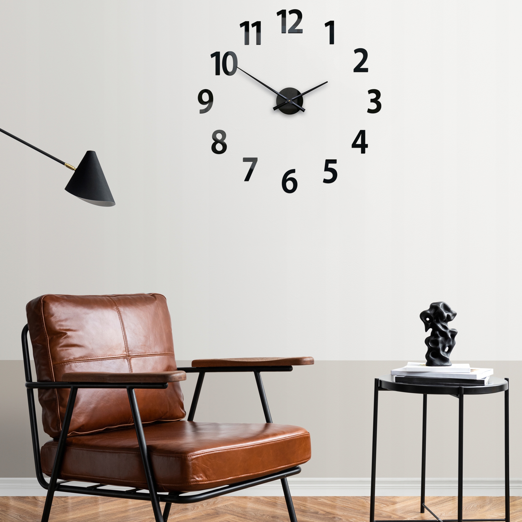 Сборка часов быстрая и удобно.Циферблат со стрелками крепится на крючок. Декоративные элементы крепятся к стене с помощью монтажного скотча. Каждый элемент проклеен скотчем. У часов есть шаблон — благодаря ему можно точно расположить элементы на стене.