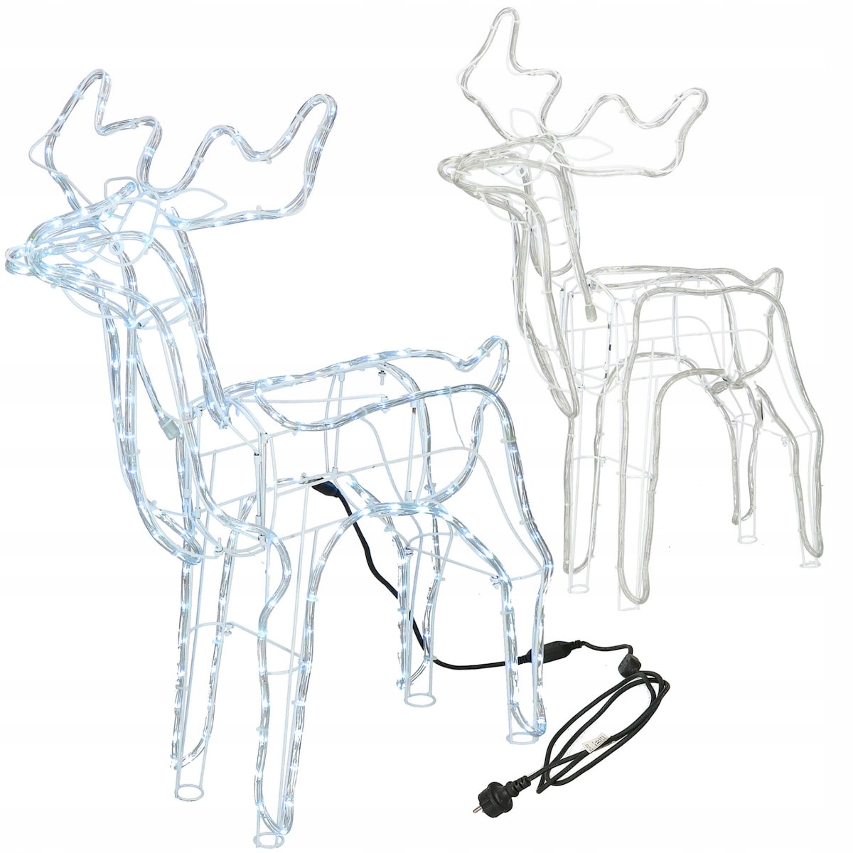Прочный, гибкий чехол легкой цепи имеет толщину почти 9 мм, а класс IP44 является параметром, свидетельствующим о том, что вы легко сможете разместить оленя как дома, так и вне его - в саду, на террасе, балконе. В комплект также входят металлические колышки, с помощью которых можно прикрепить оленя и сани к земле. Надежная металлическая конструкция обеспечивает постоянную форму установки.