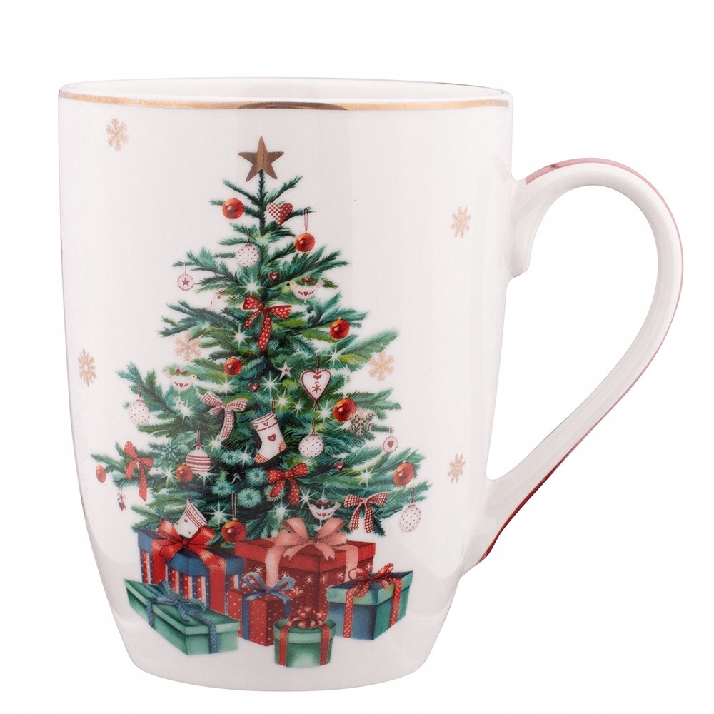- набор из двух красивых, новогодних фарфоровых кружек с елочными украшениями,