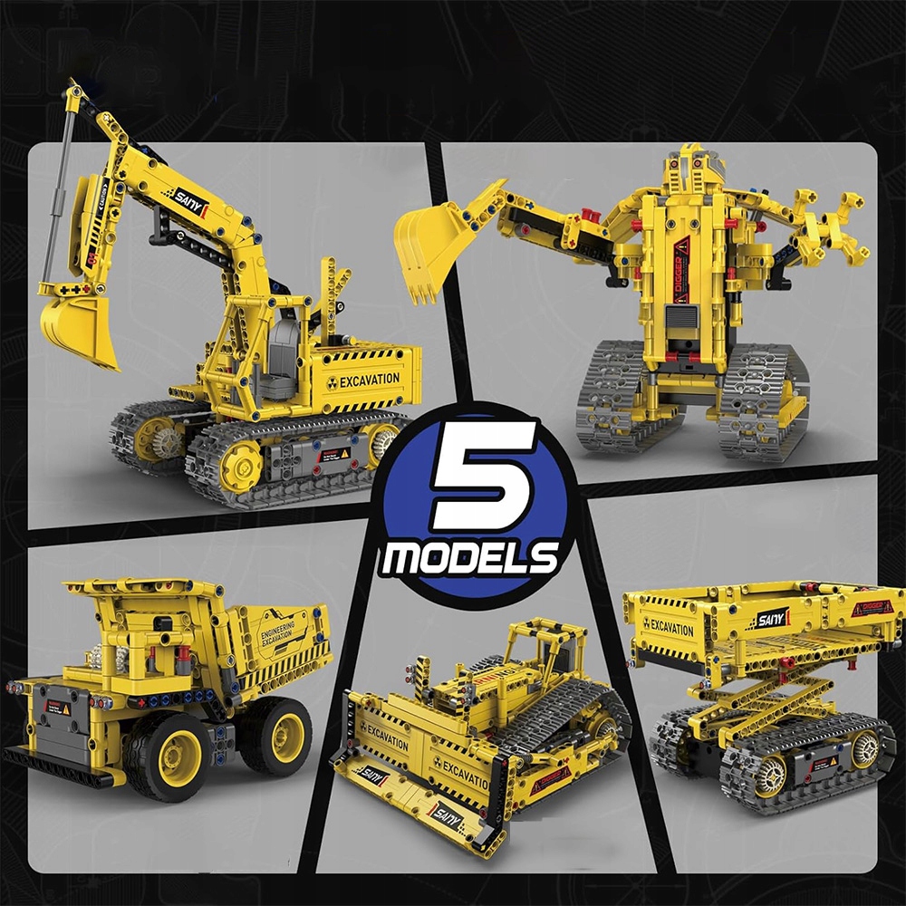Конструктор с дистанционным управлением и технологиями, состоящий из 555 деталей, может быть установлен в 5 моделях: бульдозер/экскаватор/робот/самосвал/вилочный погрузчик. Дети могут часами развлекаться вдали от экранов, узнавая, как работают технологии, и развивая интерес к командам инженеров.