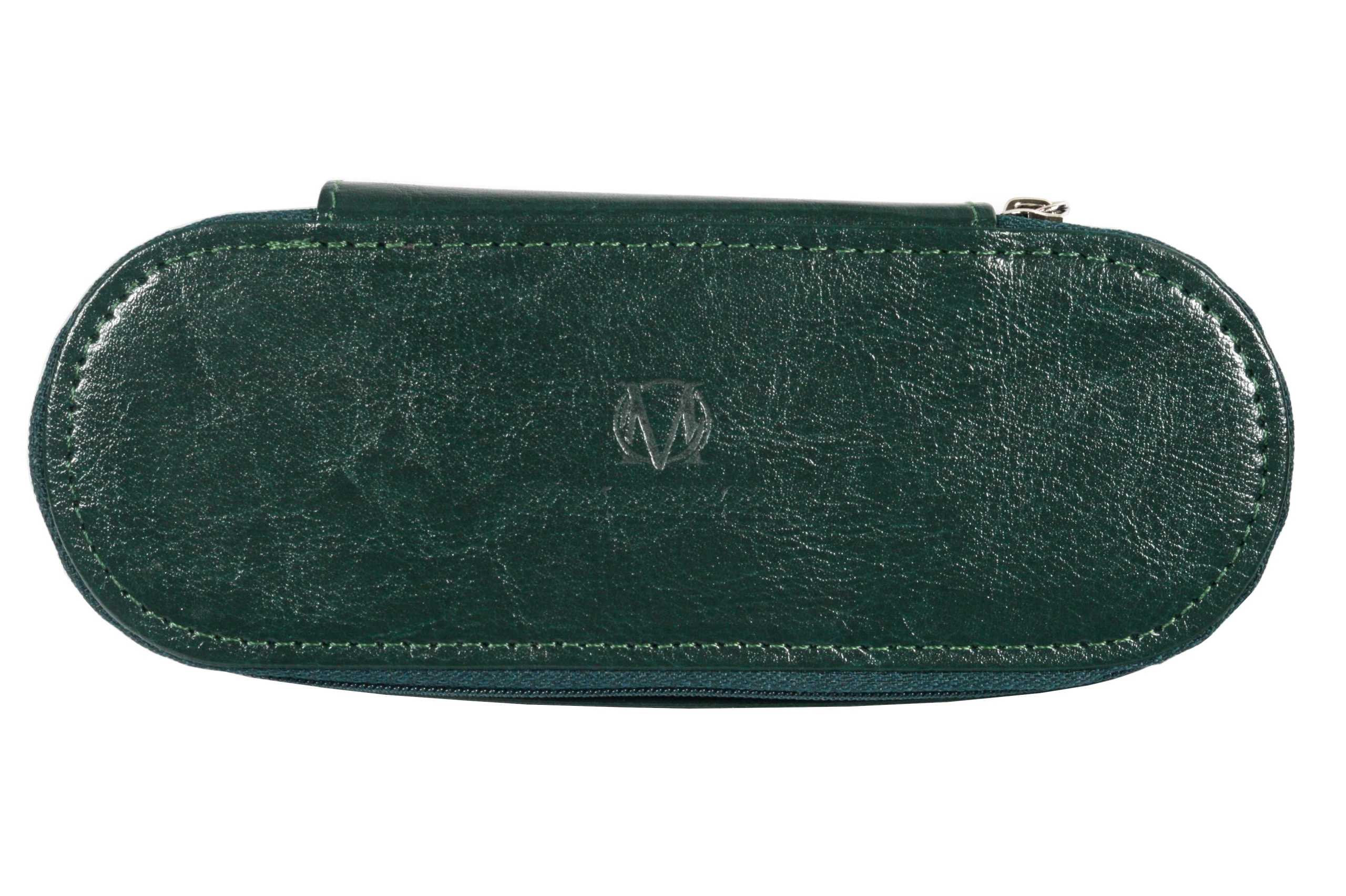 Большой зеленый кожаный пенал с отделением для очков, польское производство
