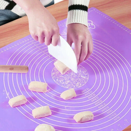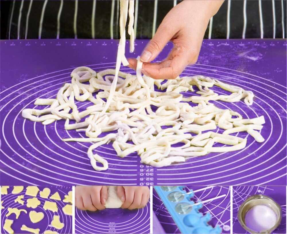Силиконовая доска прилегает к столешнице, поэтому не скользит это. Он не впитывает запахи и не прилипает к тесту. Силиконовый коврик размером 40х50 см – вещь, которая не может отсутствоватьна вашей кухне!