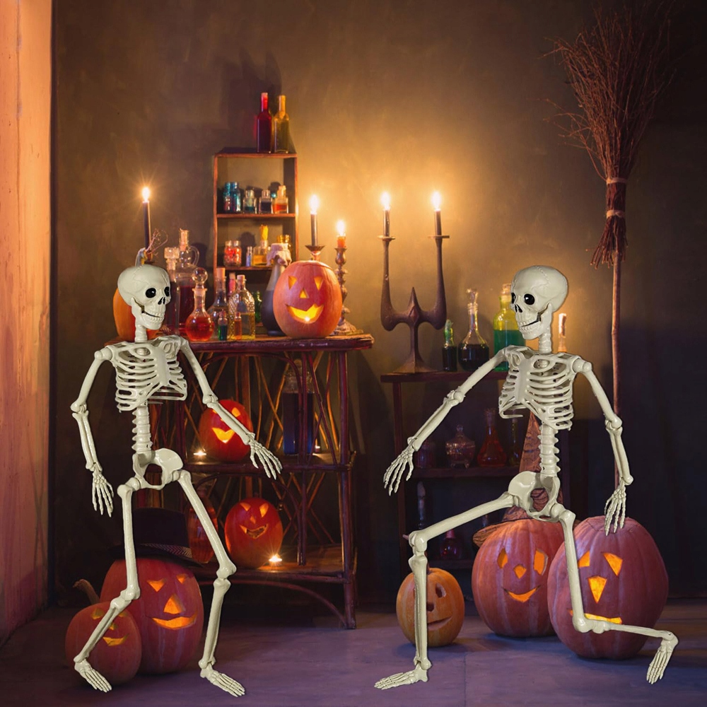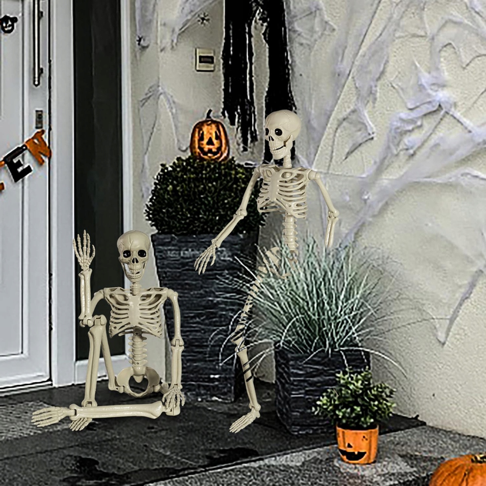 ☠️ Универсальное украшение: Этот пластиковый скелет длиной 94 см — идеальное украшение для Хэллоуина и сцен ужасов. Легкий и прочный, простой в установке и устойчивый к повреждениям. Идеально подходит для домов, офисов, школ, домов с привидениями, кладбищ, патио, задних дворов, садов и многих других мест.