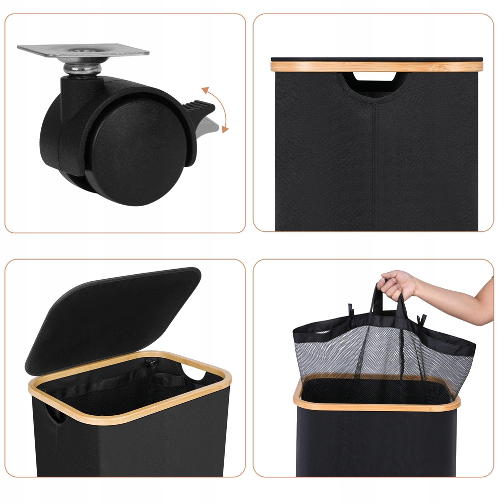 - Чёрная бамбуковая ткань большой вместимости, крышка корзины для грязной одежды