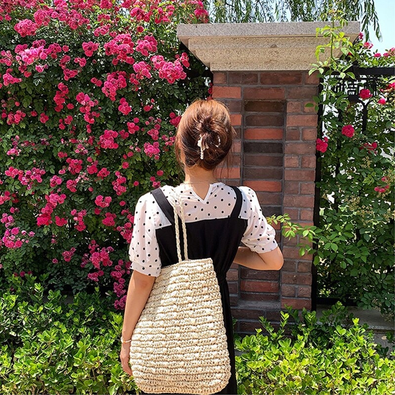 Большая соломенная сумка летняя плетеная пляжная корзина 2 года закреплена