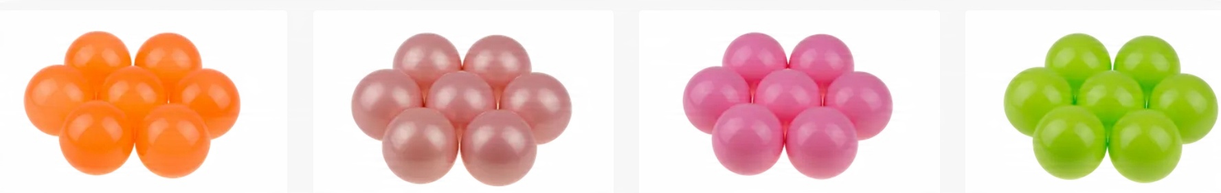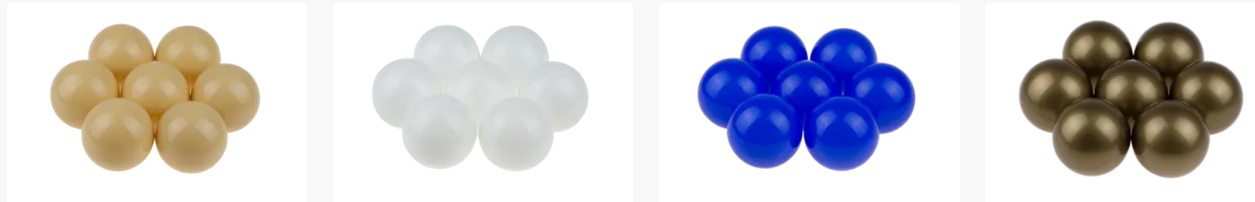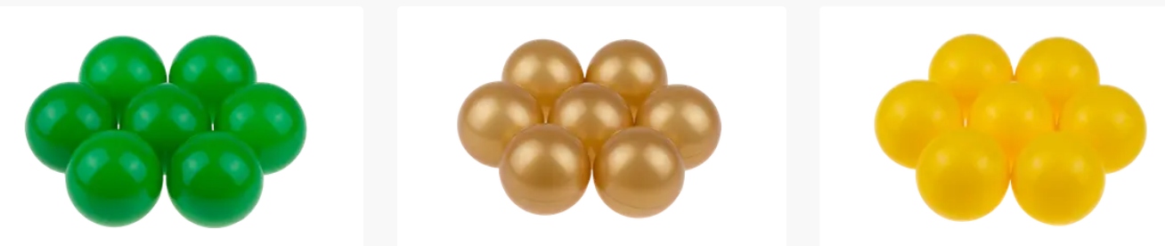 Угловой бассейн изготовлен из пенополиуретана, покрытого материалом с ПВХ-покрытием, предназначенным для медицинских приборов, что упрощает его очистку и дезинфекцию. Возможна персонализация цвета бассейна и шаров.