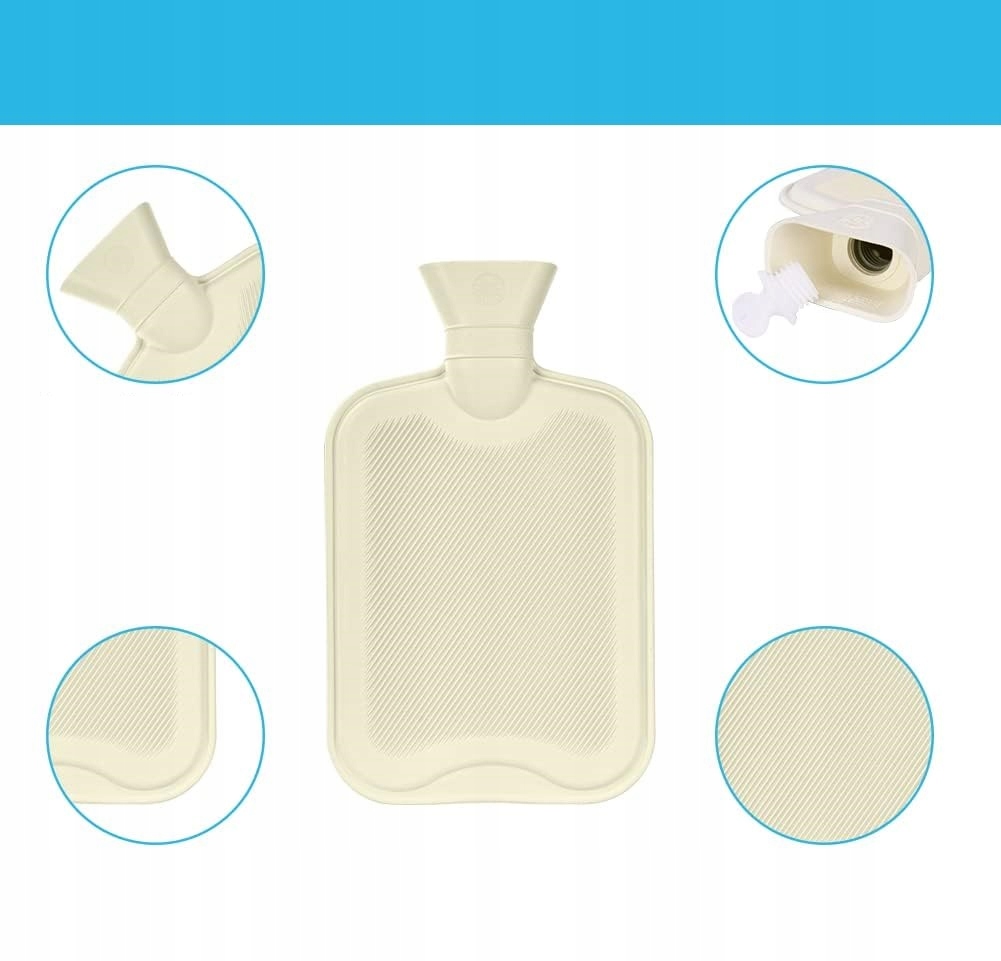 Простота в использовании: широкое отверстие позволяет легко наполнять и опорожнять грелку, а прочная крышка предотвращает вытекание воды.