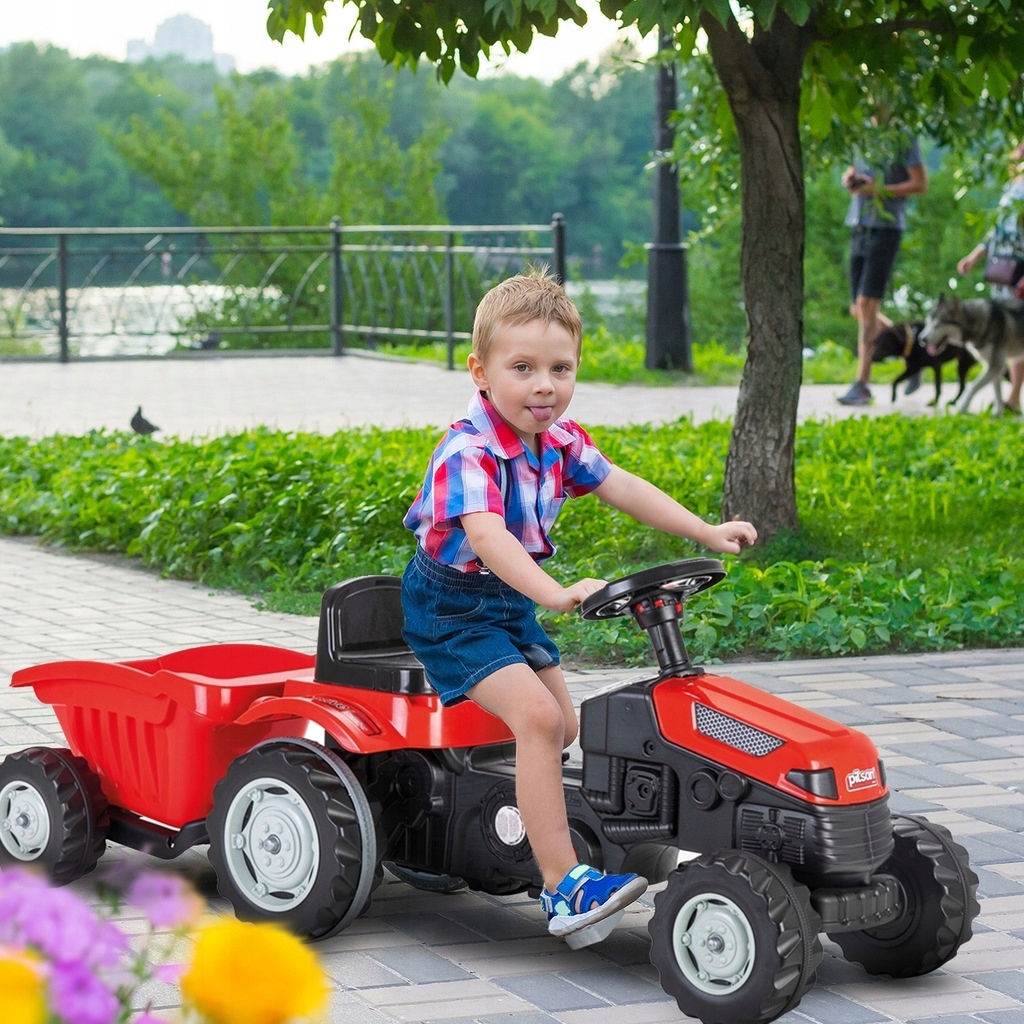 ➱ Трактор оснащен рогом с приятным звуком , который учит ребенка сигнализации его присутствия на дороге. Это не только элемент веселья, но и способ изучить основные правила безопасности в дорожном движении.
