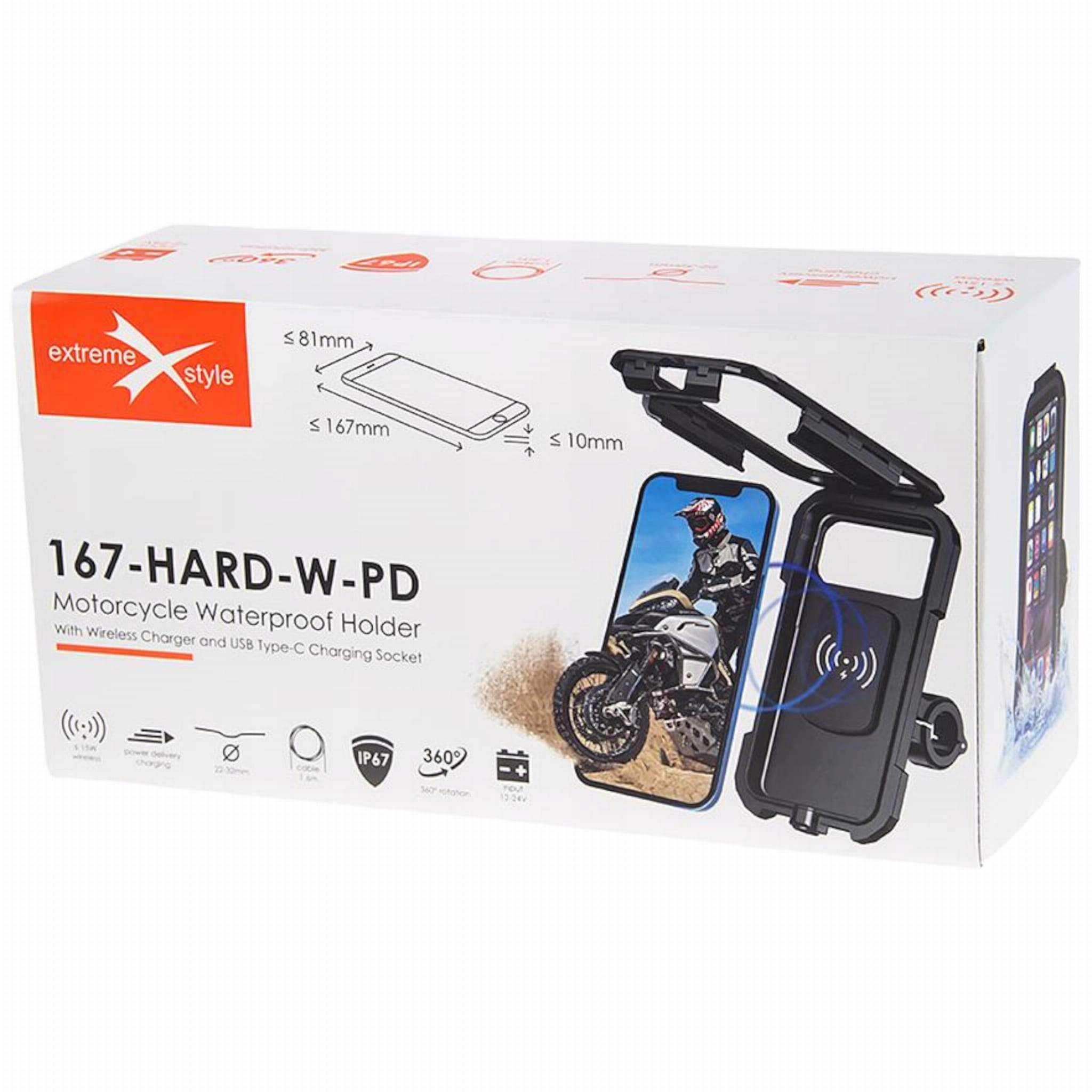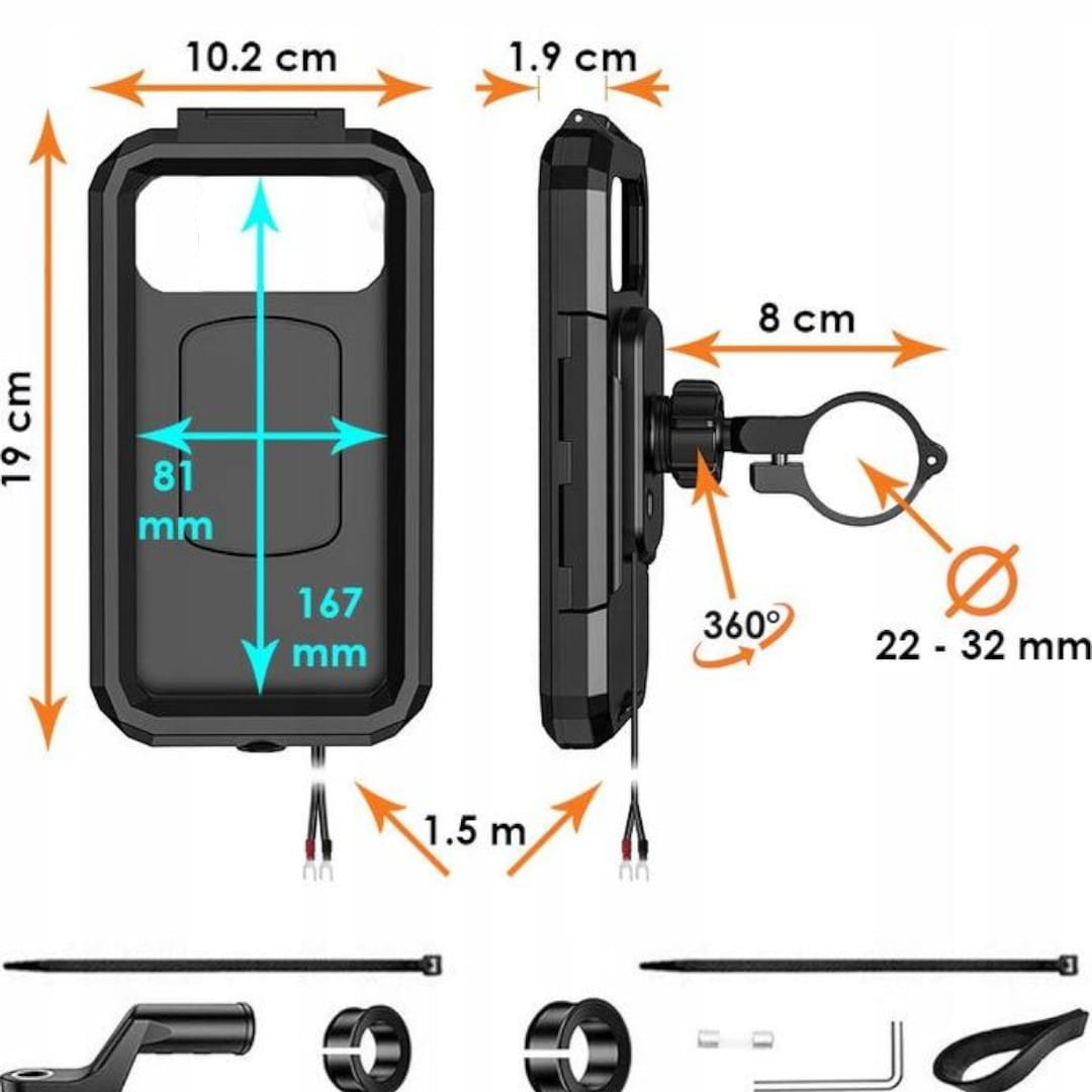 ВЕЛИКИЙ ТРИМАЧ ДЛЯ ТЕЛЕФОНУ – МОТОЦИКЛ – ВОДОНЕПРОНИКИЙ – З USBC ТА ЗАРЯДНИМ ПРИСТРОЄМ PD
