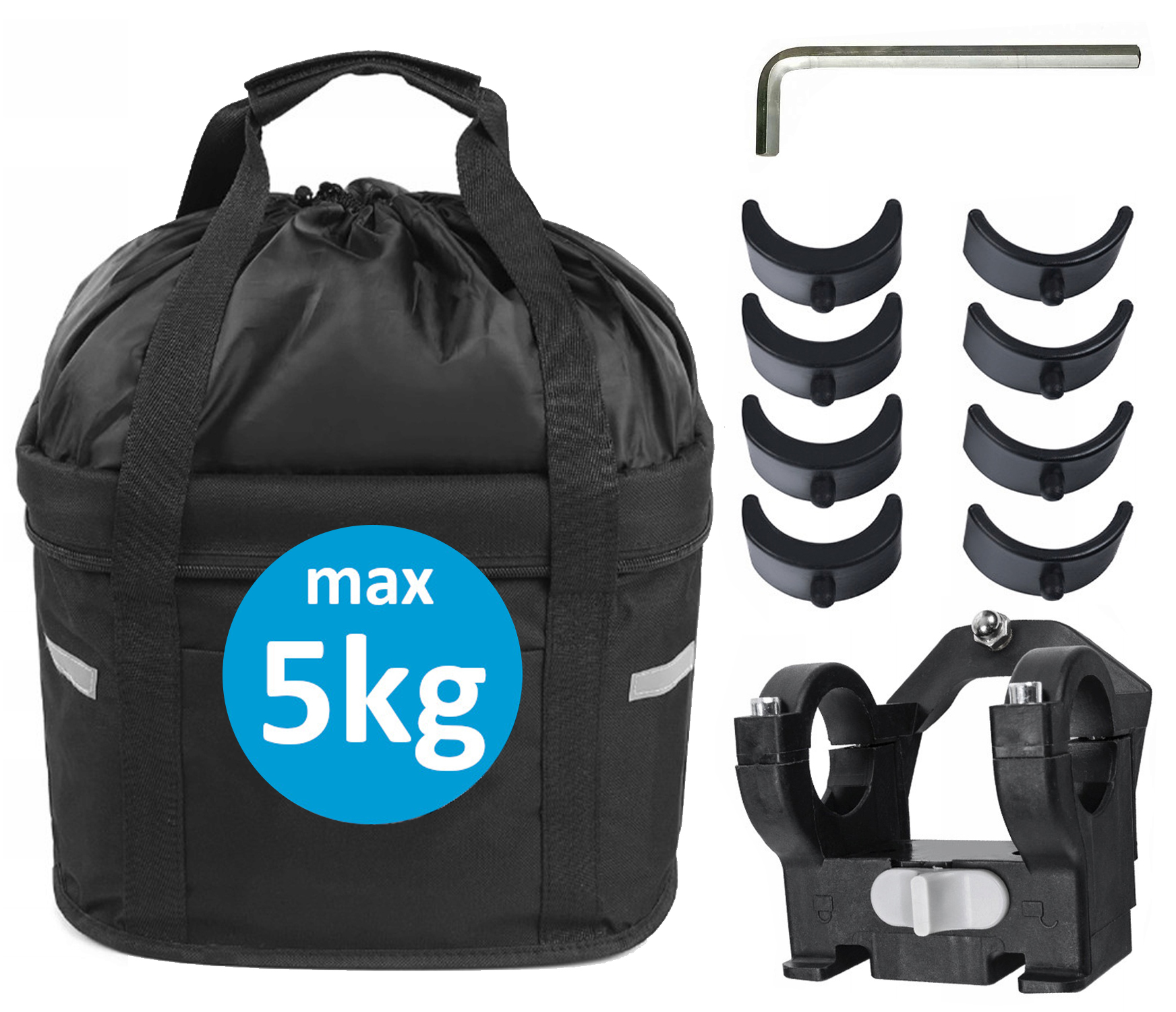 Установка корзины на ручку очень быстрая и простая. у него есть проверенная система крепления щелчка. он работает с одной кнопкой/молнией на ручке
