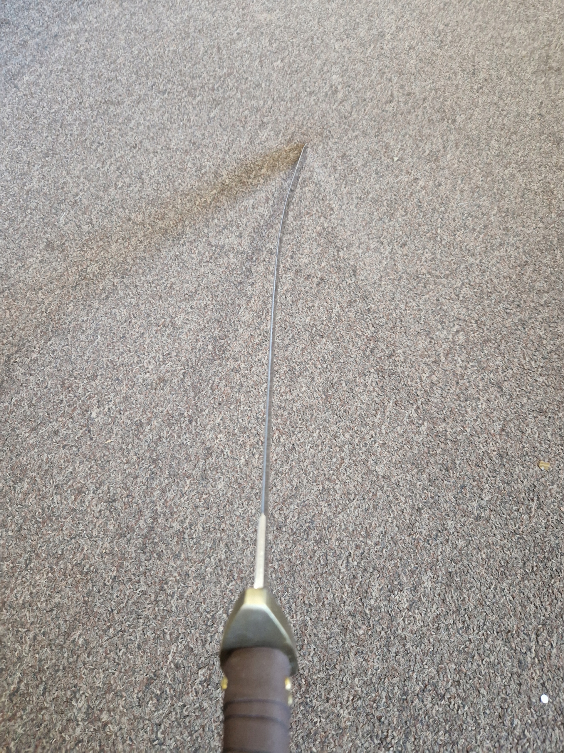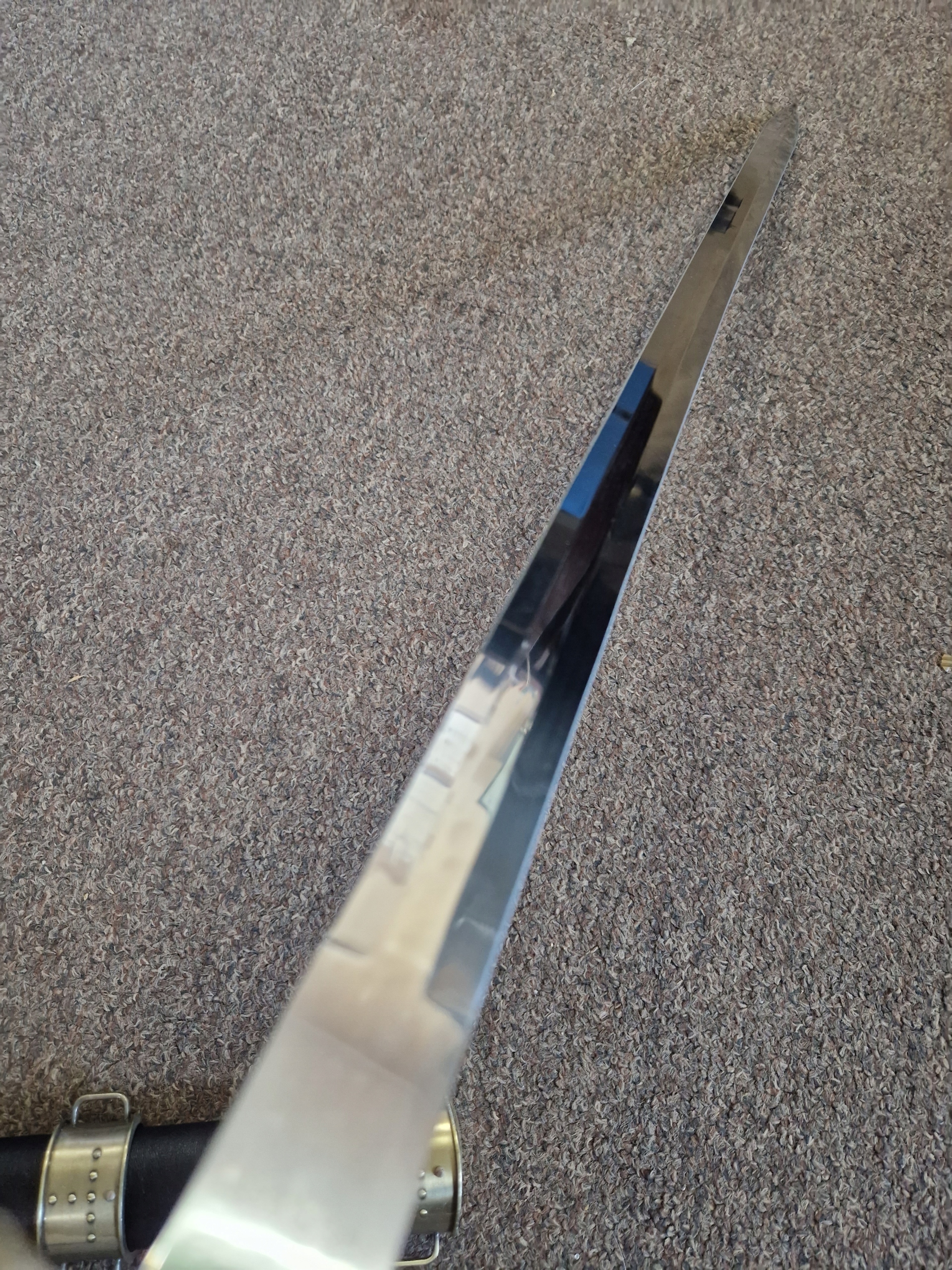 ❇ Меч имеет впечатляющие размеры - общая длина во влагалище составляет около 87 см, без влагалища около 83,5 см, длина лезвия составляет около 68,5 см, а ручки около 15 см. Ширина лезвия на ручке составляет около 3 см, а толщина лезвия составляет около 3 мм. Вес с влагалищем составляет около 1,14 кг, а без влагалища около 0,65 кг.