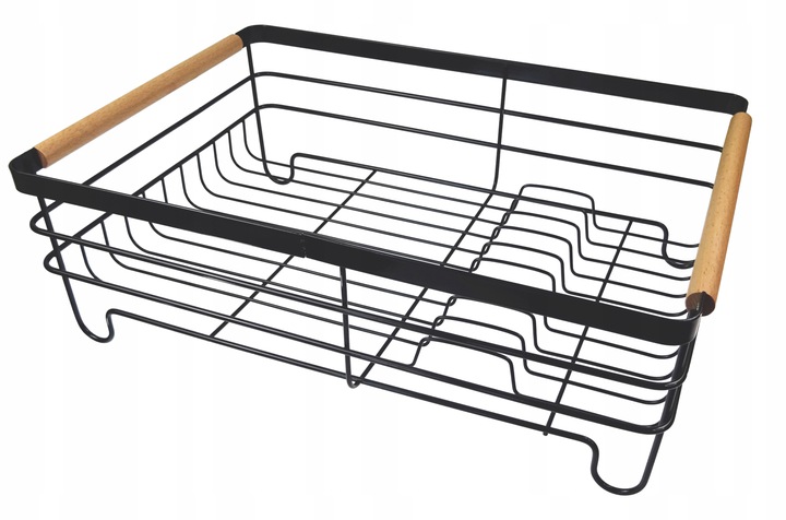 Металлический, черный каркас и деревянные вставки из дерева прекрасно впишутся в интерьер любой кухни. Ручки имеют закругленные и гладкие края, что делает их удобными в использовании. Вся металлическая конструкция покрыта порошковой краской в единый цвет – черный. Все это прекрасно смотрится на кухне и прекрасно выполняет свои функции. Посуда быстро сохнет на сушилке, а благодаря водосборной подушке ее можно разместить практически где угодно.