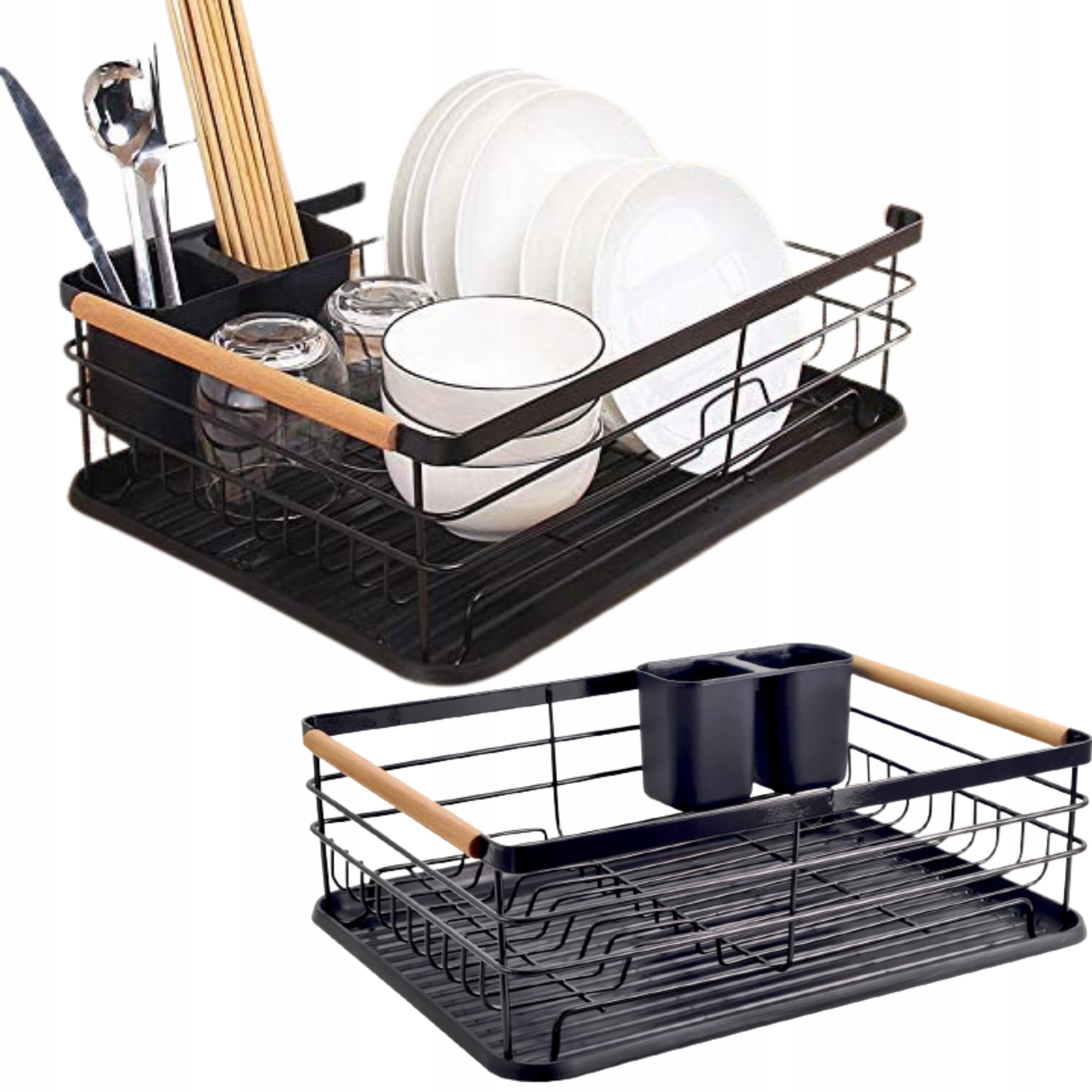 Посудомоечная машина отличается высоким качеством и прочной металлической конструкцией. Поддон изготовлен из смолы и защищает столешницу от намокания. b> В комплект также входит пластиковая сушилка для столовых приборов с двумя отделениями. Металлическая черная сушилка с деревянными ручками – элегантное решение для любой кухни.