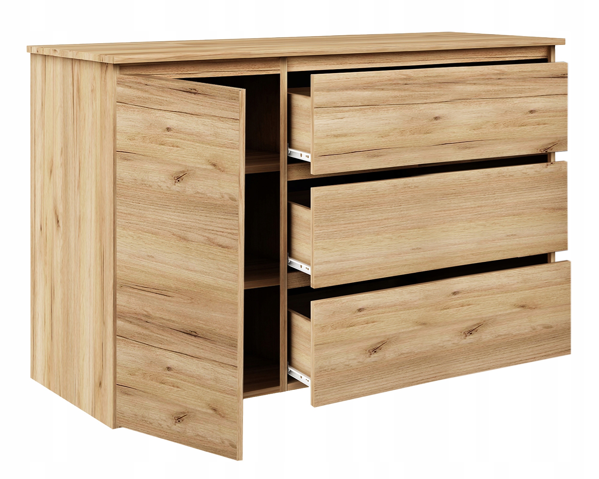 Комод «МЕГАН К5»» представляет собой вместительный комод со шкафом, внутри которого две полки и три ящика. Прекрасно подойдет к любому интерьеру, вмещает множество вещей, одежды и документов.